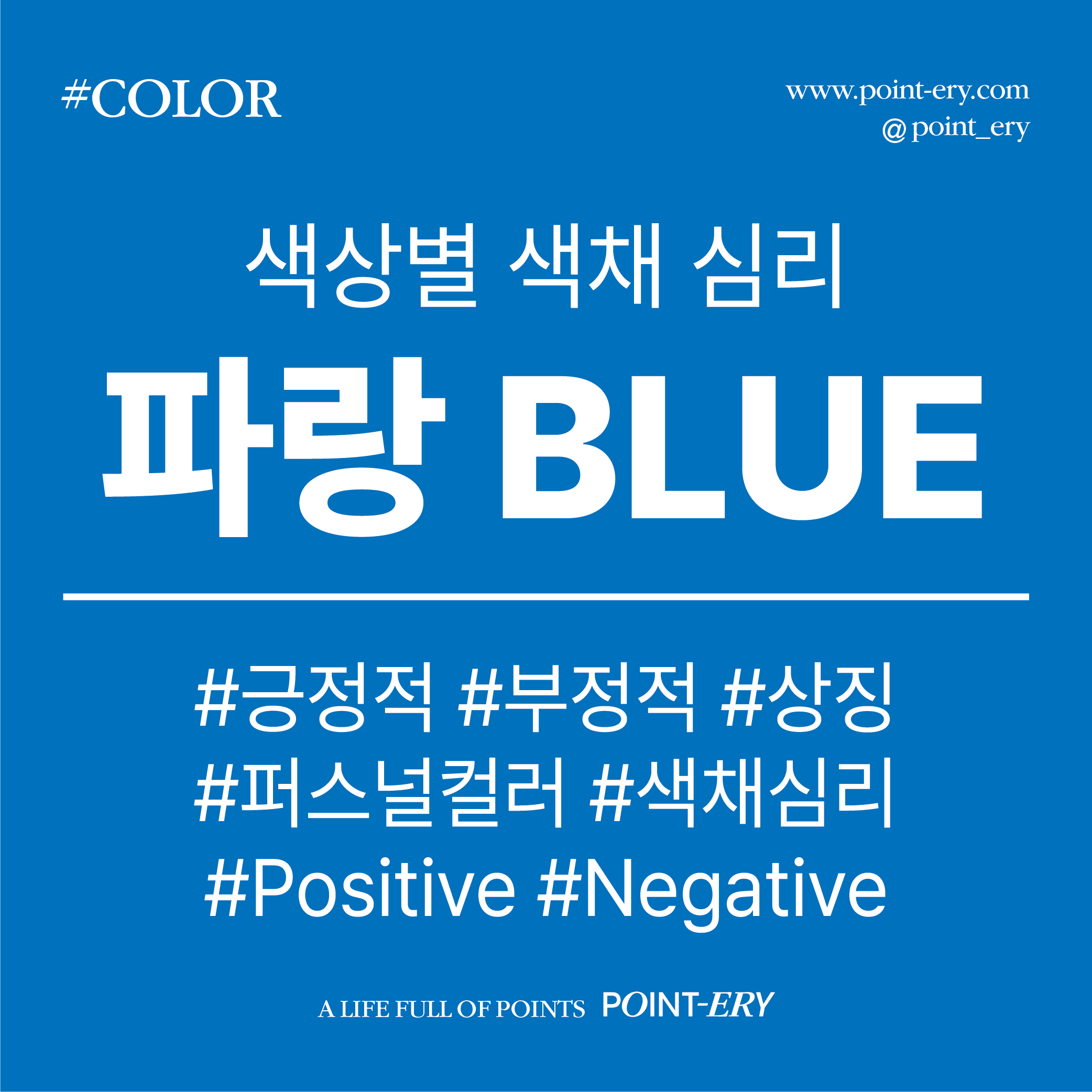 안녕하세요 포인터리입니다.오늘은 신뢰의 상징으로 기업에서도 자주 사용하고,요즘에는 가장 핫한 색이라고 할 수 있는 색, 파랑!■저번에는 의미들과 특징을 보았는데,이번에는 파란색의 여러가지 심리학적 특징에 대해서 알아볼까요? 먼저 색채 심리는 ①심리, ②성격, ③표현3가지 분류로 나누어 보았어요. 그럼 하나씩 살펴볼게요! 심리 파란색이 심리적으로 주는 효과는아래와 같은 특징이 있다고 해요. ①자연의 색이며 상처부위를 해독시켜주는 역할을 해요.맥박을 느리게 하며 무의식중에 안정감과 긴장을 풀어주는 색이랍니다. ②명상을 할 때 색상별로 효과가 다르다고 해요.파란색은 명상을 할 때 불면증이나 불안감을 해소시키며,차분하고 평화로운 천국의 이미지를 연상시켜 준다고 해요.단 파란색으로 명상을 너무 오래하면 무기력을 가져올 수 있어요. 성격 파란색을 좋아하는 사람이나자신을 표현할 때 파란색으로 표현하는 사람들의 성격은아래와 같은 특징이 있다고 해요. ①전통적이고 헌신적이며, 변함없는 가치관을 가지는 특징이 있어요.지난 날을 연속적으로 지속하려는 욕구가 있는 사람이라 할 수 있으며,정직하고 싶은 마음이 있는 사람이에요.비교적 명랑하며 밝은 성격으로 주위에 잘 적응하며 순종하는 행동을 보여요.수동적이고 즐기는 것을 선호해요.자신의 감정을 억제하며. 심리적인 안정감과 성장하려고 하는 마음을 갖고 있어요. ②신중하고 내성적이며, 보수적인 신념이 강해요.자제심이 있고 논리적이에요.자기변호가 뛰어난 성격이에요.침착하고 기품 있고 어른스러워요.배려심이 많고 조용한 성격이랍니다. ③집중해서 애를 써야 하는 일에 별로 적합하지 않고,좀 더 편안하게 할 수 있는 일을 원하는 스타일이에요.꼭 필요한 것은 시간이며,일을 해도 내 삶의 모든 것이 일에만 쏟아지는 것을 원치않는 성격이에요.내 시간과 나만이 휴식할 수 있는 ‘자유함’이 있어야 해요. ④사람을 만날 때 조심스럽고 마음의 문을 여는 시간이 오래 걸려요.다양하게 사귀는 것보다 좁고 깊은 인간관계를 선호해요. ⑤선과 형을 파란색으로 그릴 경우,성격이 명랑하고 주위에 적응을 잘하는 스타일을 의미해요. ⑥남자가 파란색을 사용한다면,뛰어난 경영 능력이 있어 착수한 일을 성사시키는 스타일을 의미해요.여자가 파란색을 사용한다면,냉정하며 헌신적이고 생각이 깊은 성격을 의미해요.아동이 파란색을 사용한다면,항상 자기 일에 전념하거나 성실한 성격이며, 비교적 명랑함을 의미해요. ⑦고집이 세고 독선적이에요.의무감, 복종, 순종, 긴장하고 불만스런 성격을 의미해요.공상적인 꿈을 많이 꾸는 스타일이며, 잘 놀라는 성격이에요. 표현 파란색으로 표현을 하는 것에 대한 의미와 효과는아래와 같은 특징이 있다고 해요. ①이지적이며 이상적인 영원을 바라는 심정, 명상에 잠기기도 함을 의미해요.내적인 평화, 외부적인 평화를 의미하는 색이에요.고요한 내면, 수평적으로 침착하고 움츠림이 있음을 뜻해요. 불만이 있으면서 복종하는 상태로써,내성적이고 우울한 감정에 빠지거나 긴장하고 불안한 경향이 있을 의미해요. ②규칙적인 생활을 강요당하거나 부모로부터 성실함을 강요 당함을 의미해요. ③연 파랑색은 조건 없이 주는 사랑과 양육을 뜻해요. ④짙은 파랑색은 돌보는 의미로 초개인적인 모성을 뜻하고,여성이 사용하였을 때는 돌봄과 긍정적임을 의미하고,남성이 사용하였을 때는 수동성을 의미해요. ⑤짙은 파랑(남색) Indigo은밤하늘, 어둠, 폭풍의 바다, 무의식, 잠자고 있는 상태,어두운 내면, 모성의 원형적인 요소를 나타내는 컬러에요. ⑥만다라 속의 남색은삶 속에 위협적인 사건 경험, 유아기 어려운 경험,어머니에 대한 불신감, 어머니와의 뿌리 깊은 갈등,위협적인 어머니의 존재를 의미하는 색이에요. 여기까지 파란색의 다양한 심리학적 특징를 살펴보았습니다.생각보다 파란색이 주는 심리적 효과에 부정적인 부분이 많죠?의미와 특징들에서는 긍정적인 부분이 매우 많았는데또 심리적으로는 조금 다른 느낌이라정리하면서도 너무 신기했어요. 이러한 색채 심리들을 바탕으로 색을 사용하면다양한 방향으로도 많이 설명할 수 있을 것 같아요.그렇다면 다음번에는 또 다른 컬러들의 색채 심리도 알아볼게요! 마지막으로 마무리하며 PPL 시간! 포인터리에는 12가지 색의 다양한 의미를 모은포스터를 디자인하여 판매하고 있어요. https://www.point-ery.com/product/Color Color / GRAPHIC POSTER12가지 색상별 상징과 의미를 담은 포스터. 일상에서 만나는 색상에는 여러 가지 의미가 숨어있어요. 색상은 사람이 어떤 물체를 볼 때가장 먼저 인지하는 요소이자가장 오래 기억에 남는 요소라고 해요. 그만큼 중요한 색상은 각각 상징하는 고유한 이미지 있어요.이러한 특징을 이용하여 브랜딩과 마케팅, 심리치료, 명상 등여러 방면에 널리 사용되고 있죠. 이러한 색상의 의미를 생각하며 주변을 살펴보면익숙하던 것도 또 새롭게 다가와요. Life is a painting, and you are the artist. - Paul J. Meyer인생은 그림이고, 당신은 예술가입니다. - 폴 J. 마이어 폴 마이어의 명언처럼좋아하