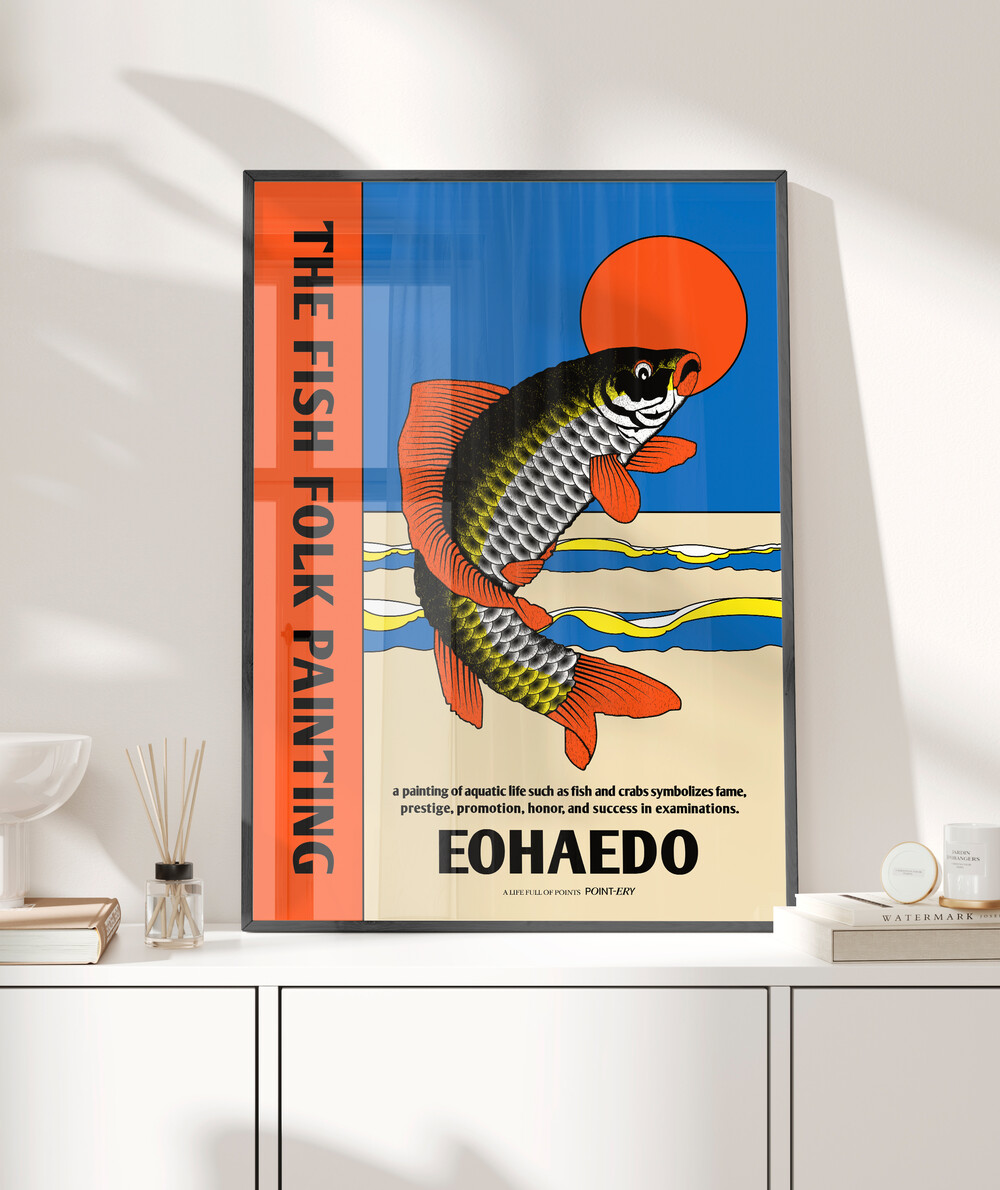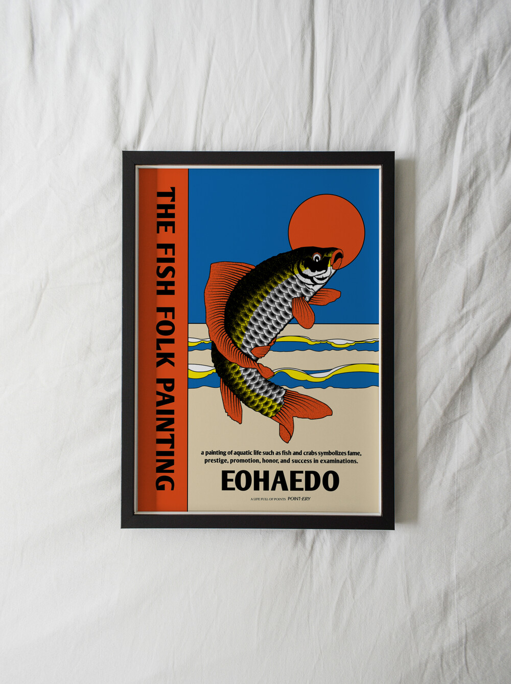 ‘어해도 Eohaedo’ 포스터는 겸재 정선의 ‘어약영일’, 이광사와 이영익의 ‘잉어’에서 영감을 얻어 디자인되었습니다.