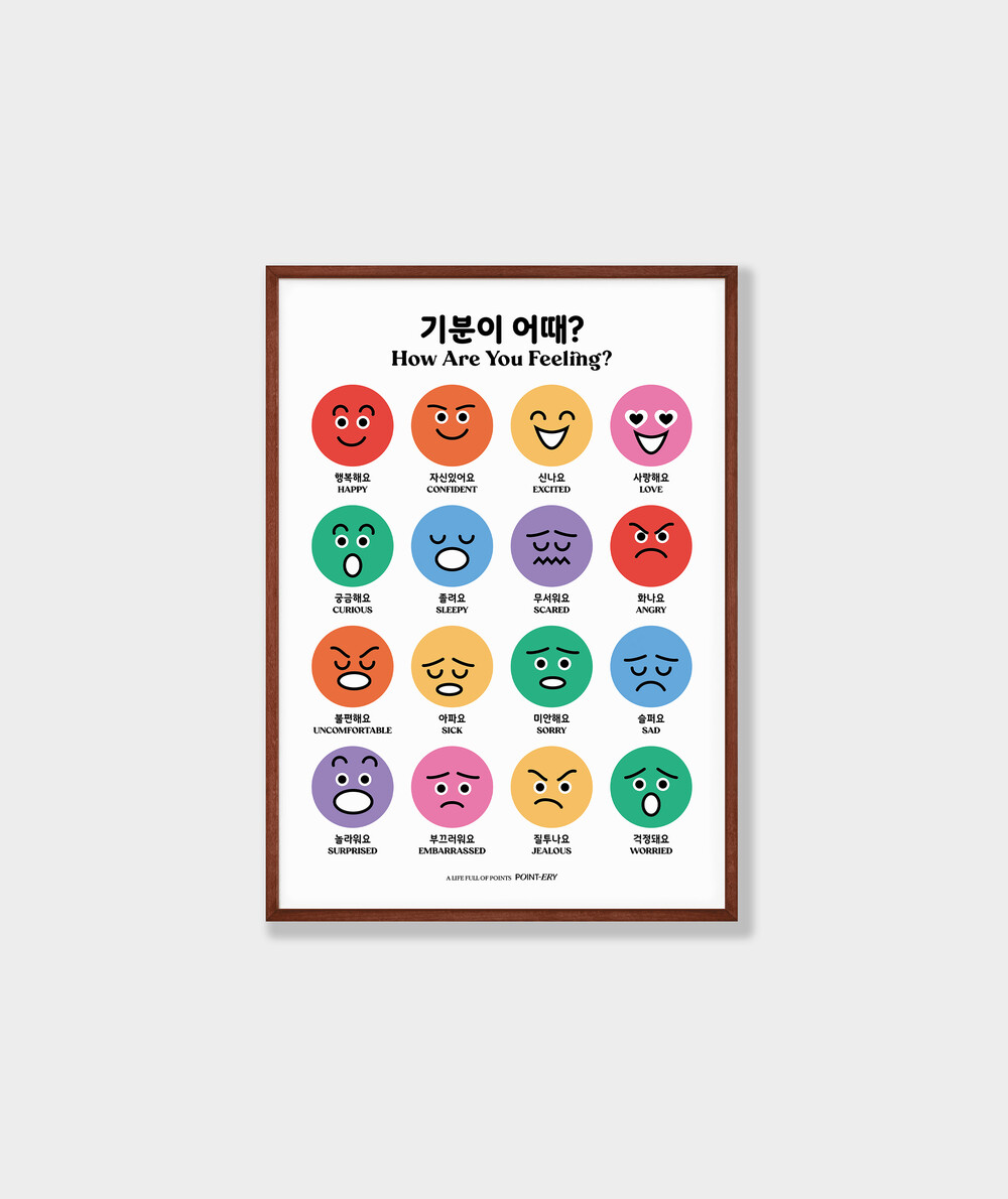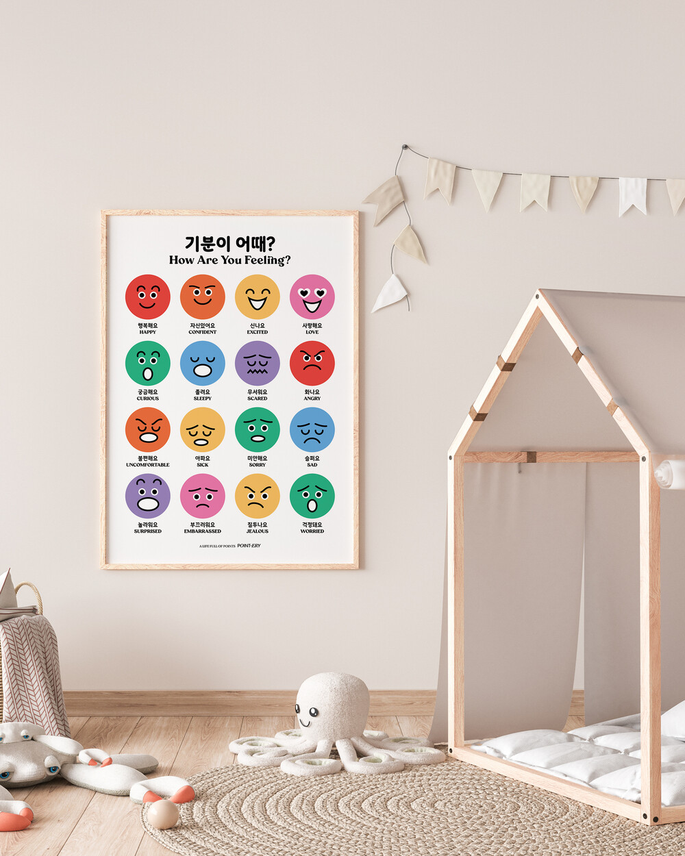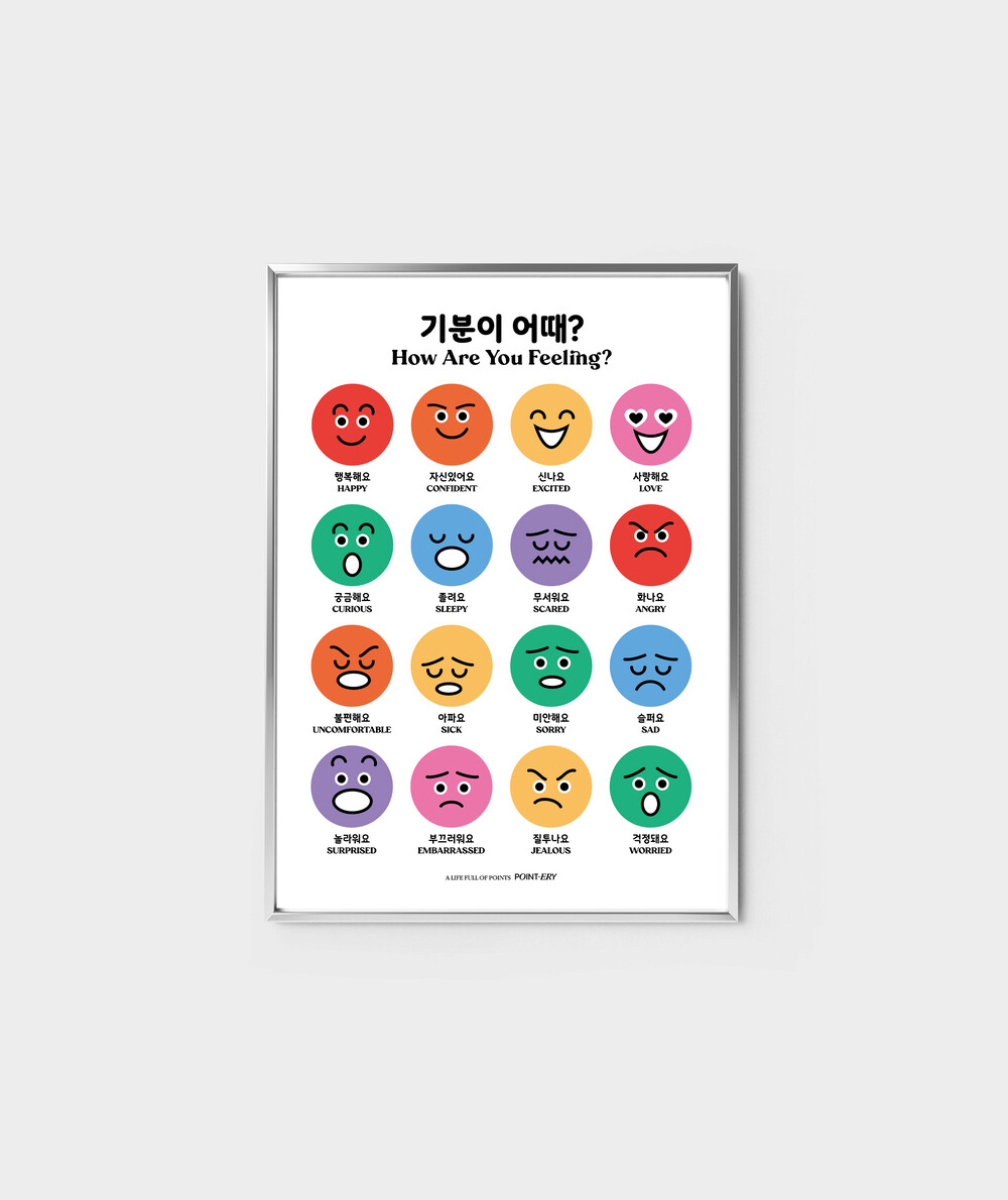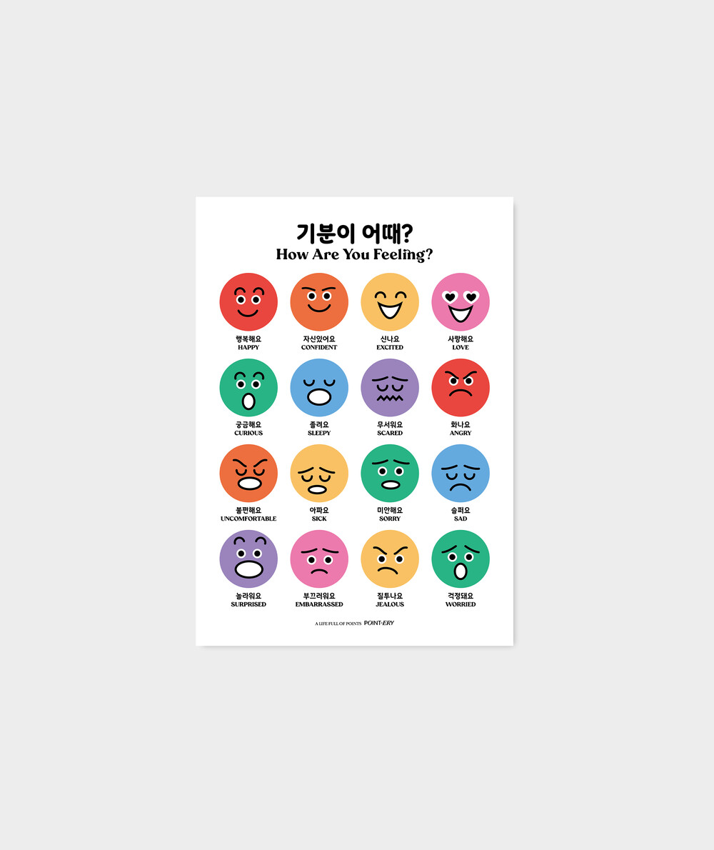 아기자기한 일러스트로 여러가지 감정 Feeling 표현을 담은 포스터.