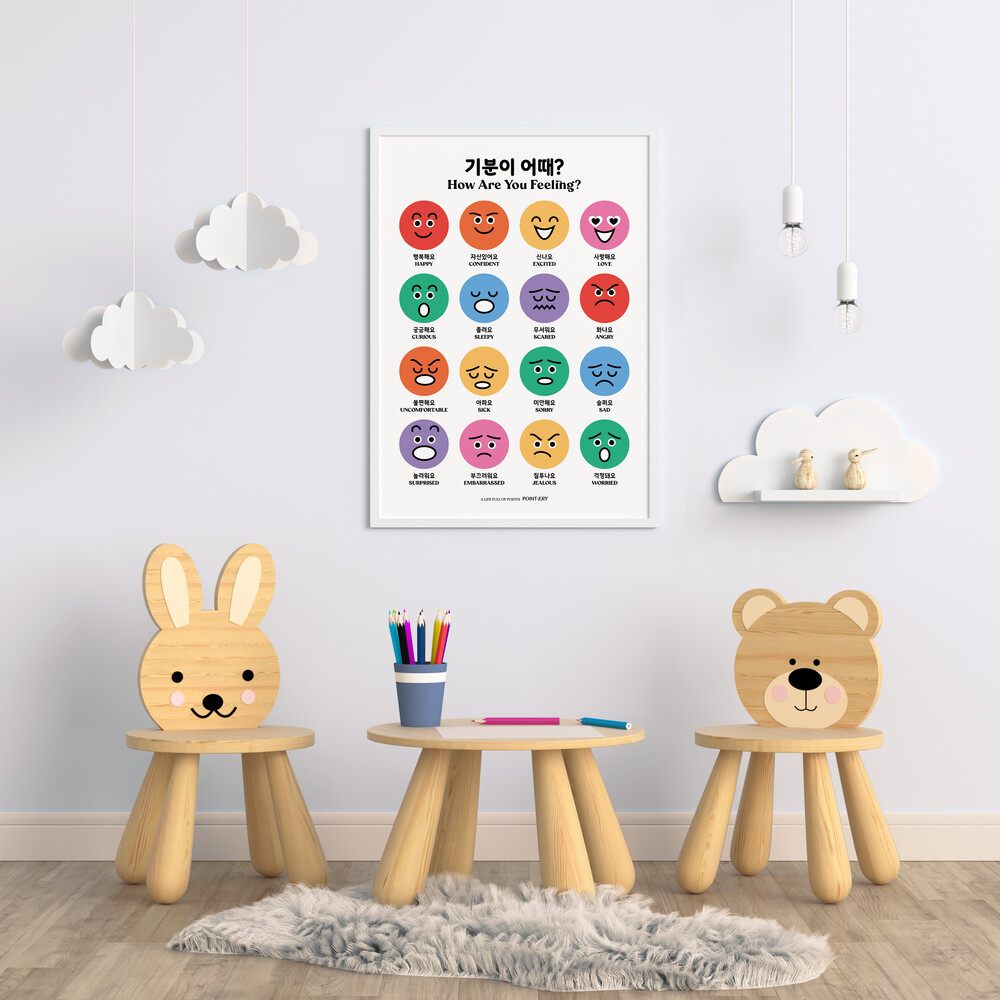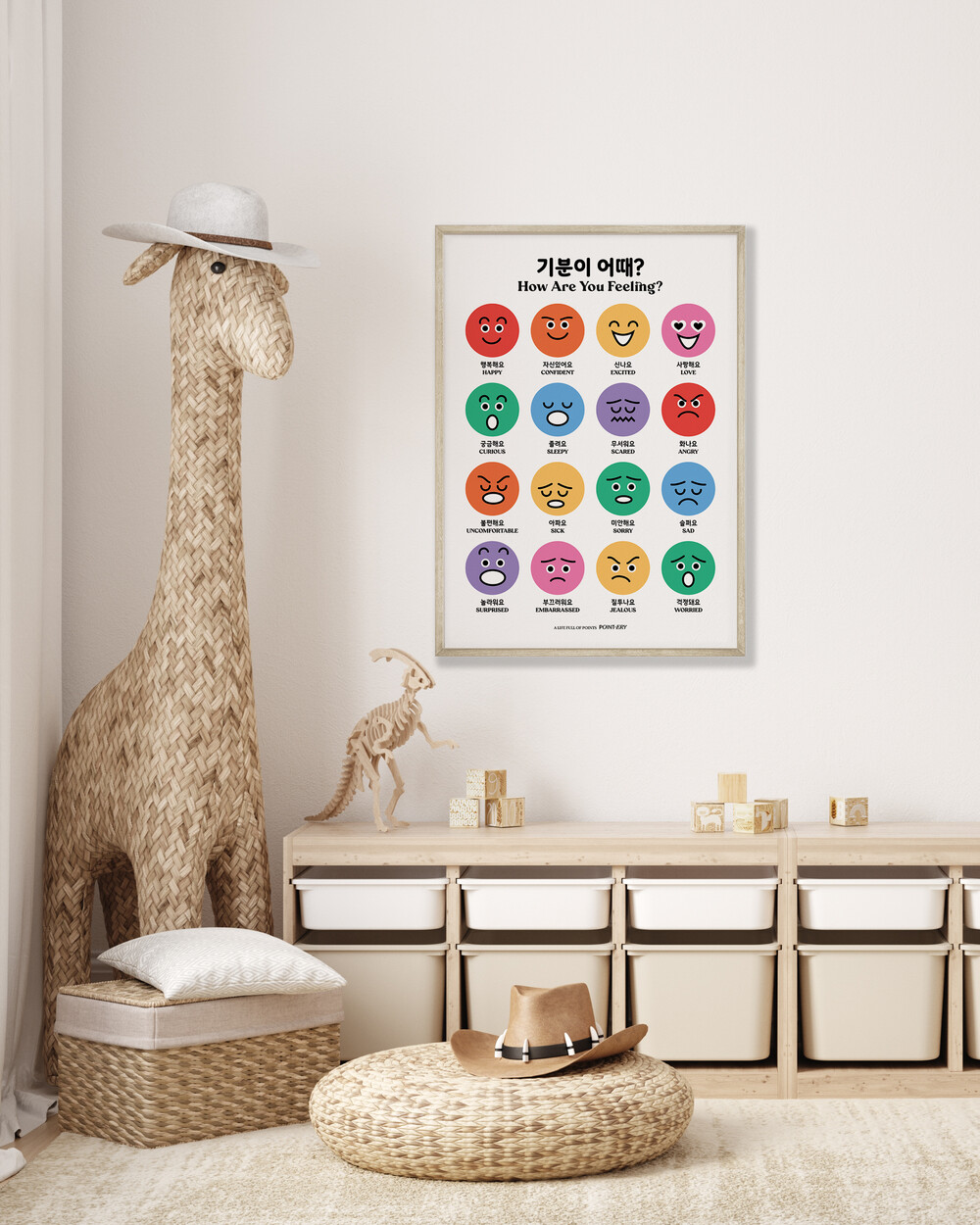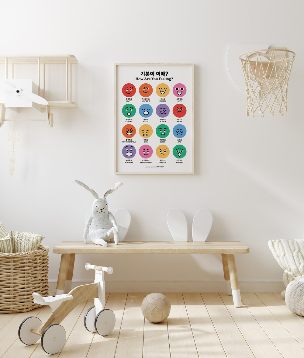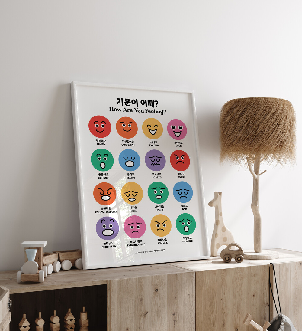 아기자기한 일러스트로 여러가지 감정 Feeling 표현을 담은 포스터.