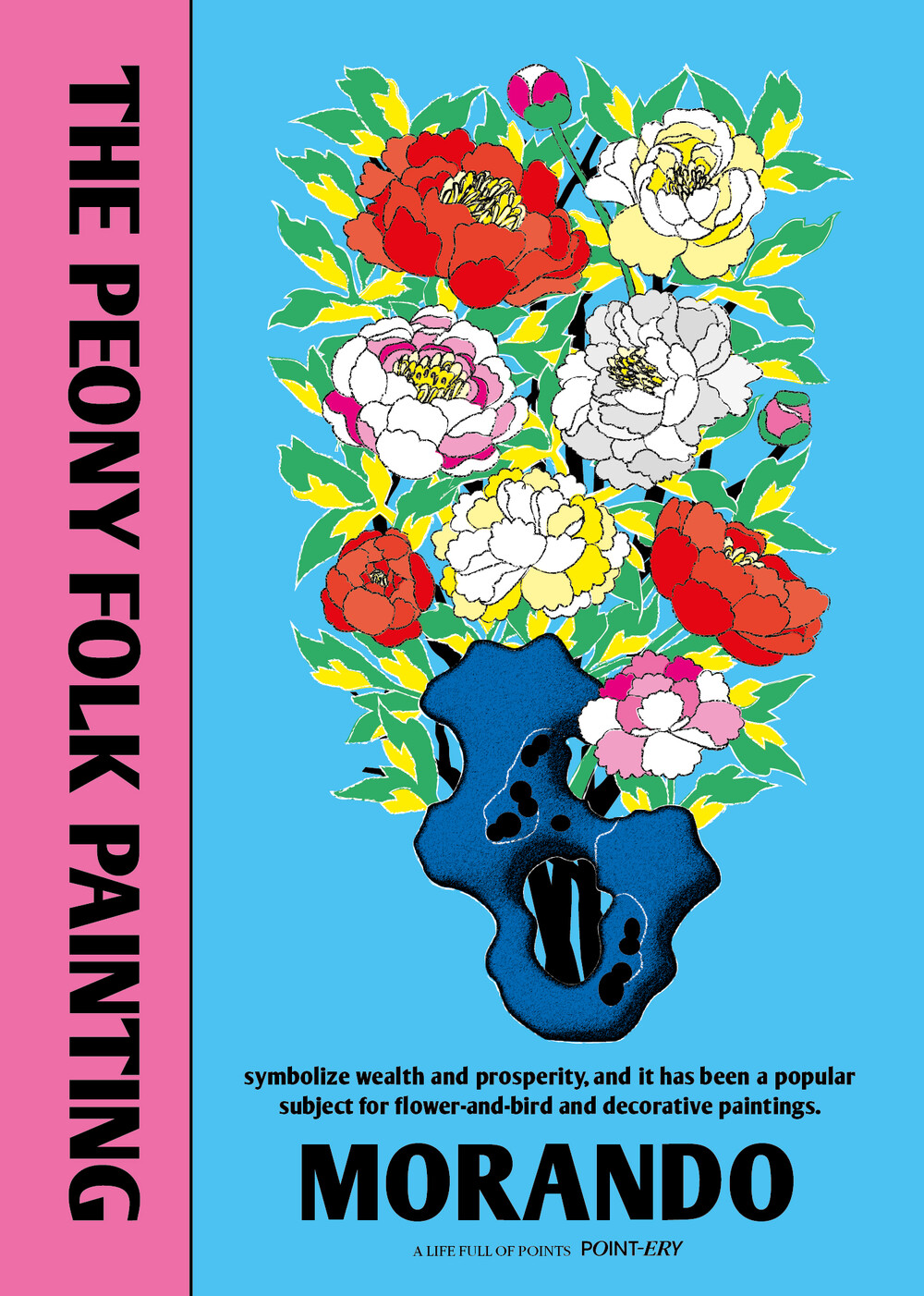 The 'Morando' poster is inspired by the ‘Eight-Fold Screen of Peonies and Rocks’ that was used in royal ceremonies. It features ‘Peony’, the king of flowers symbolizing wealth and prosperity, and ‘Oddly-shaped Stone’ representing longevity.