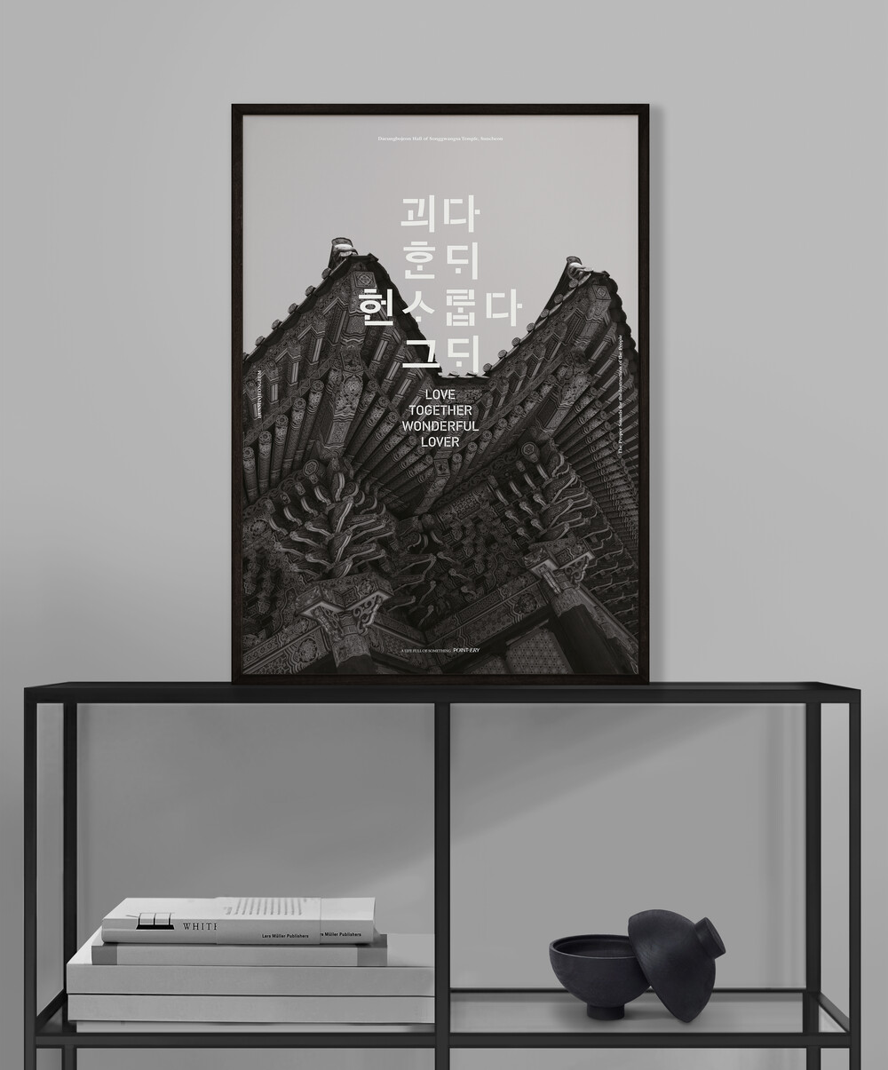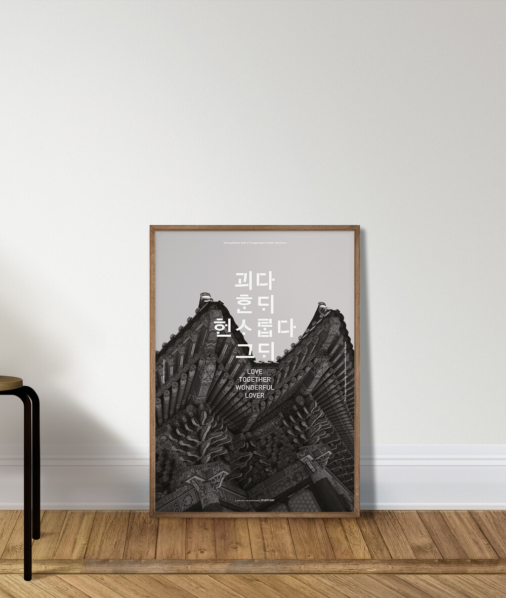 시조에 등장하는 한글 고어들을 타이포그래피로 이용하여 제작되었습니다.