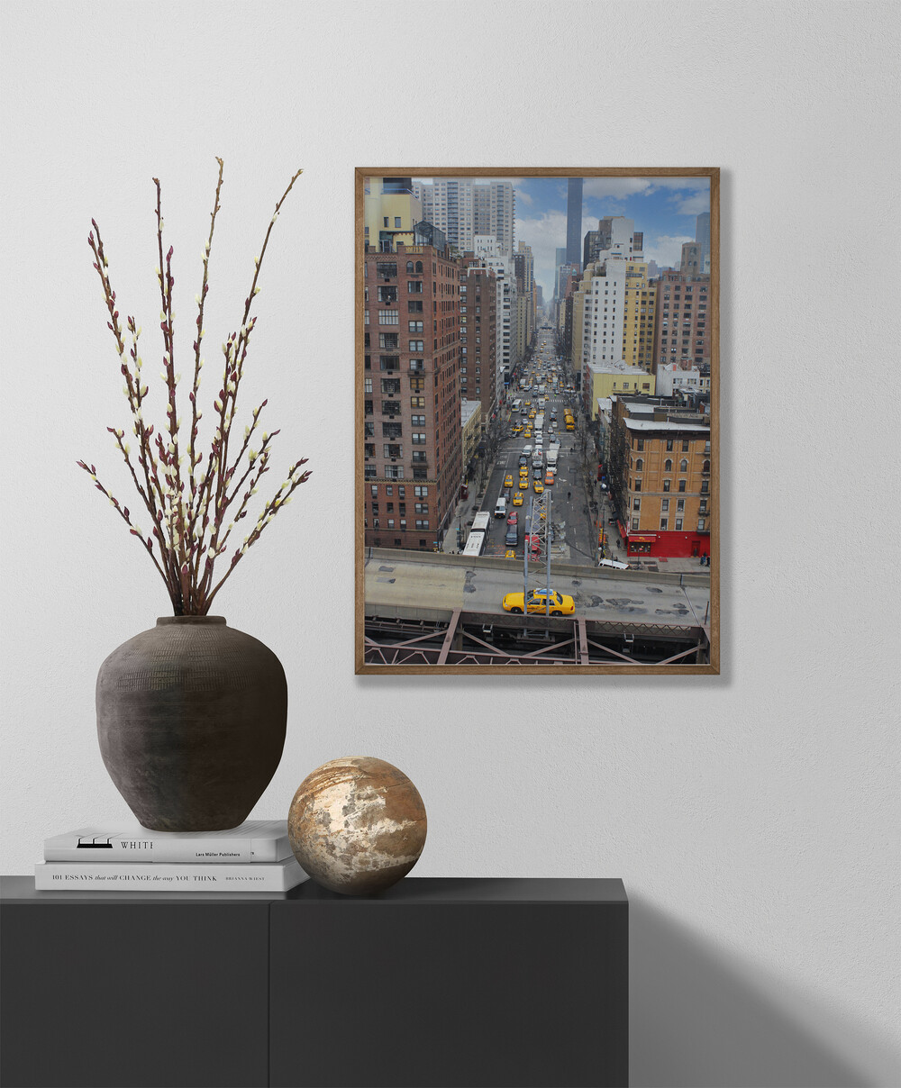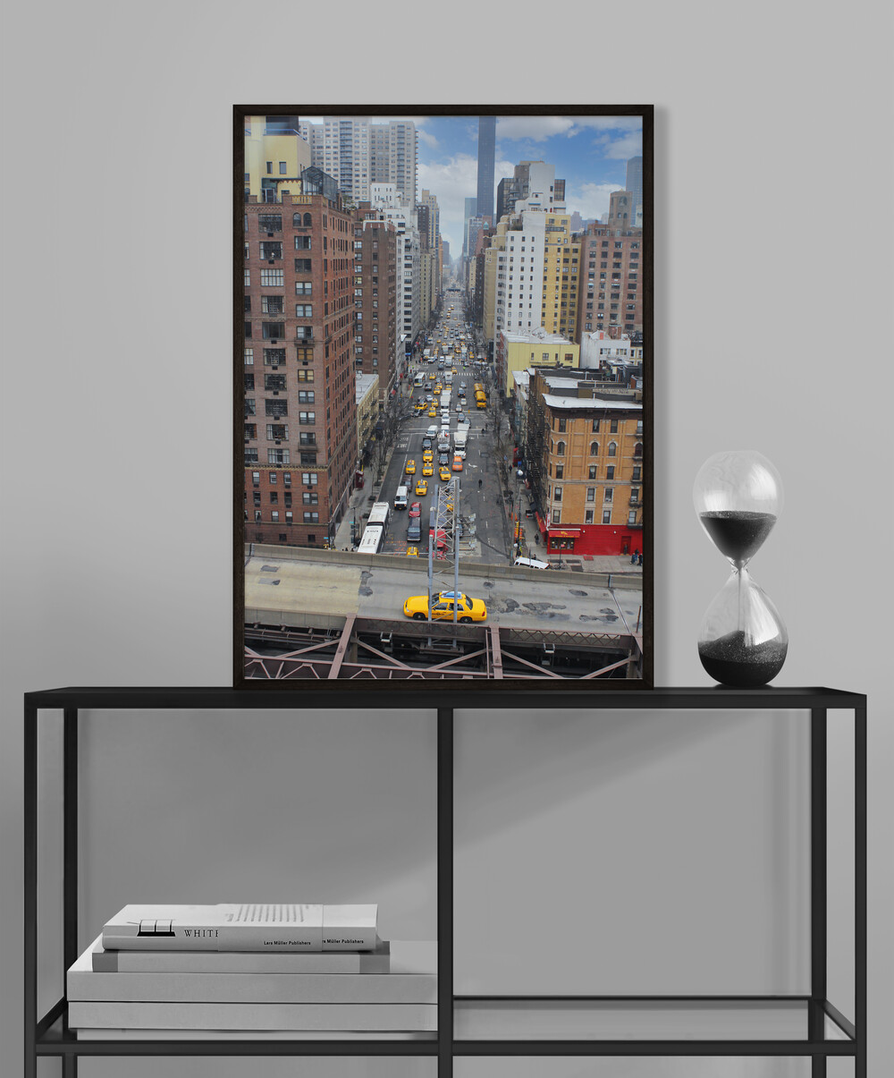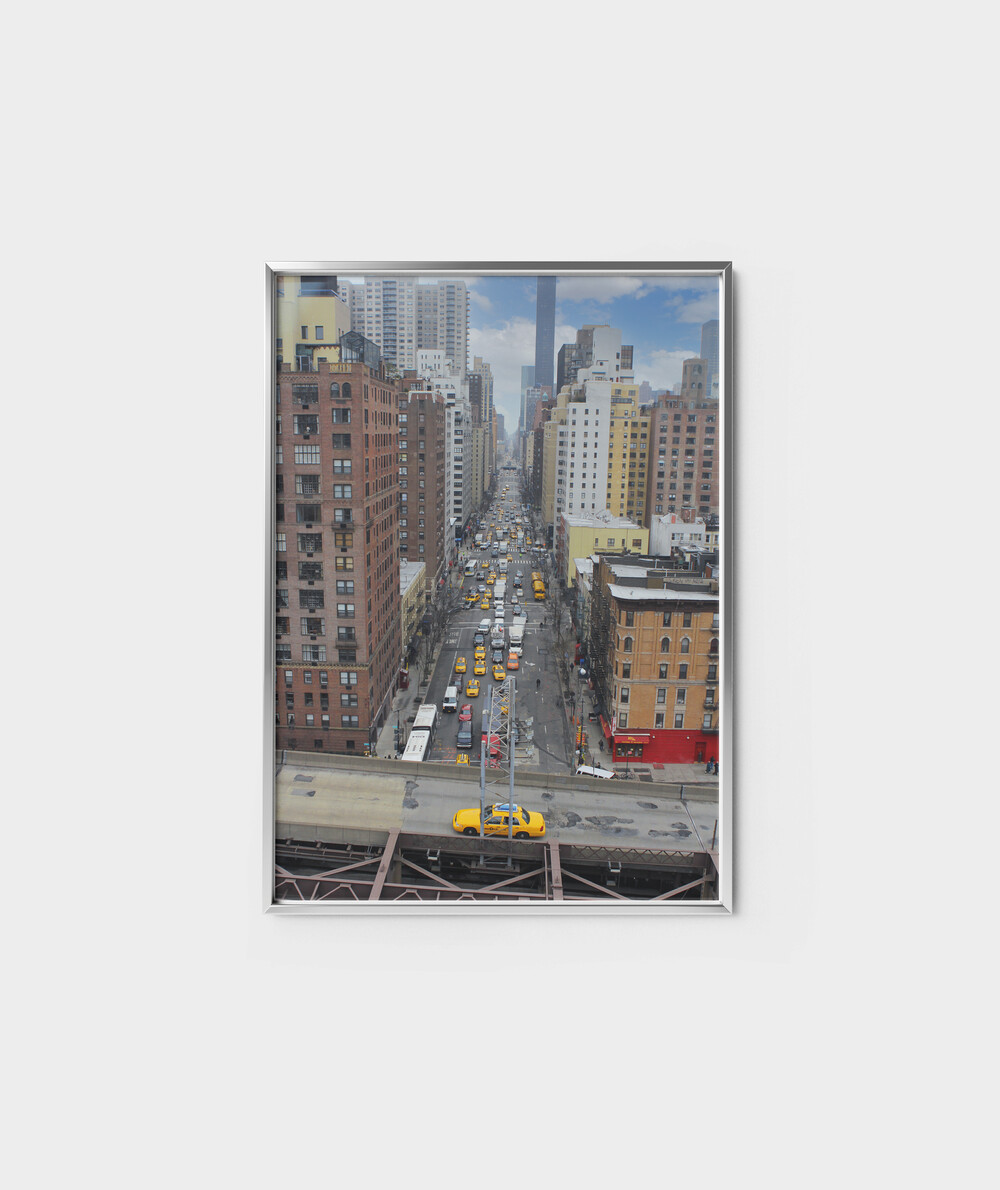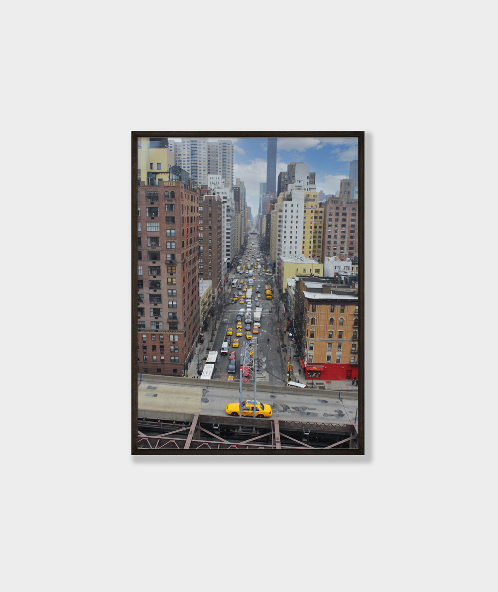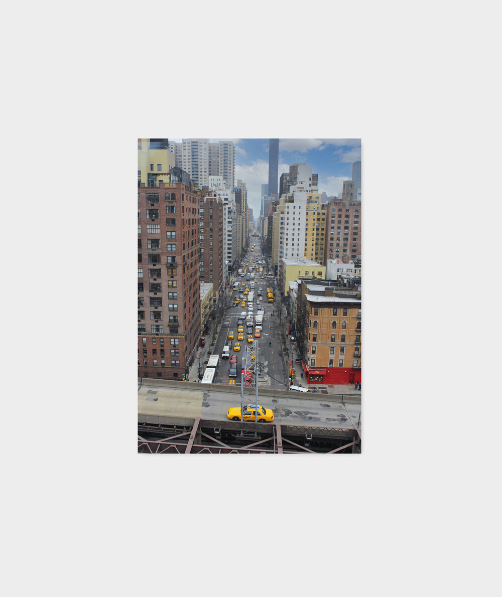 루스벨트 아일랜드 트램웨이를 타고 지나가던 중 만난 쭉 펼쳐진 빌딩 숲, 그리고 그 사이로 보이는 노란 택시들.