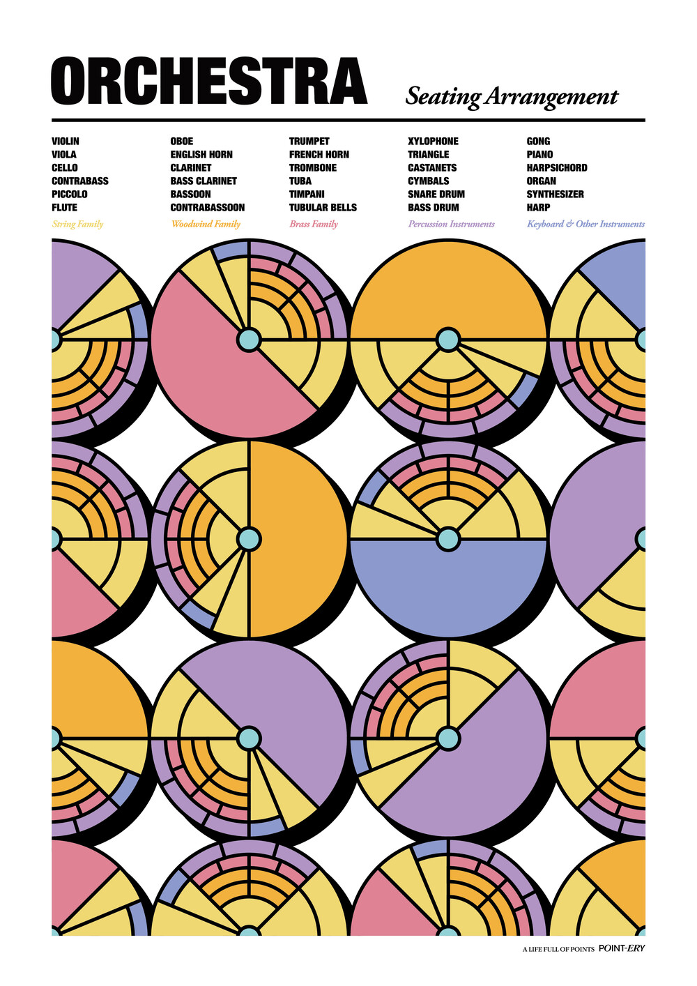 오케스트라의 자리배치 Seating Arrangement, 그리고 악기의 종류 및 이름.