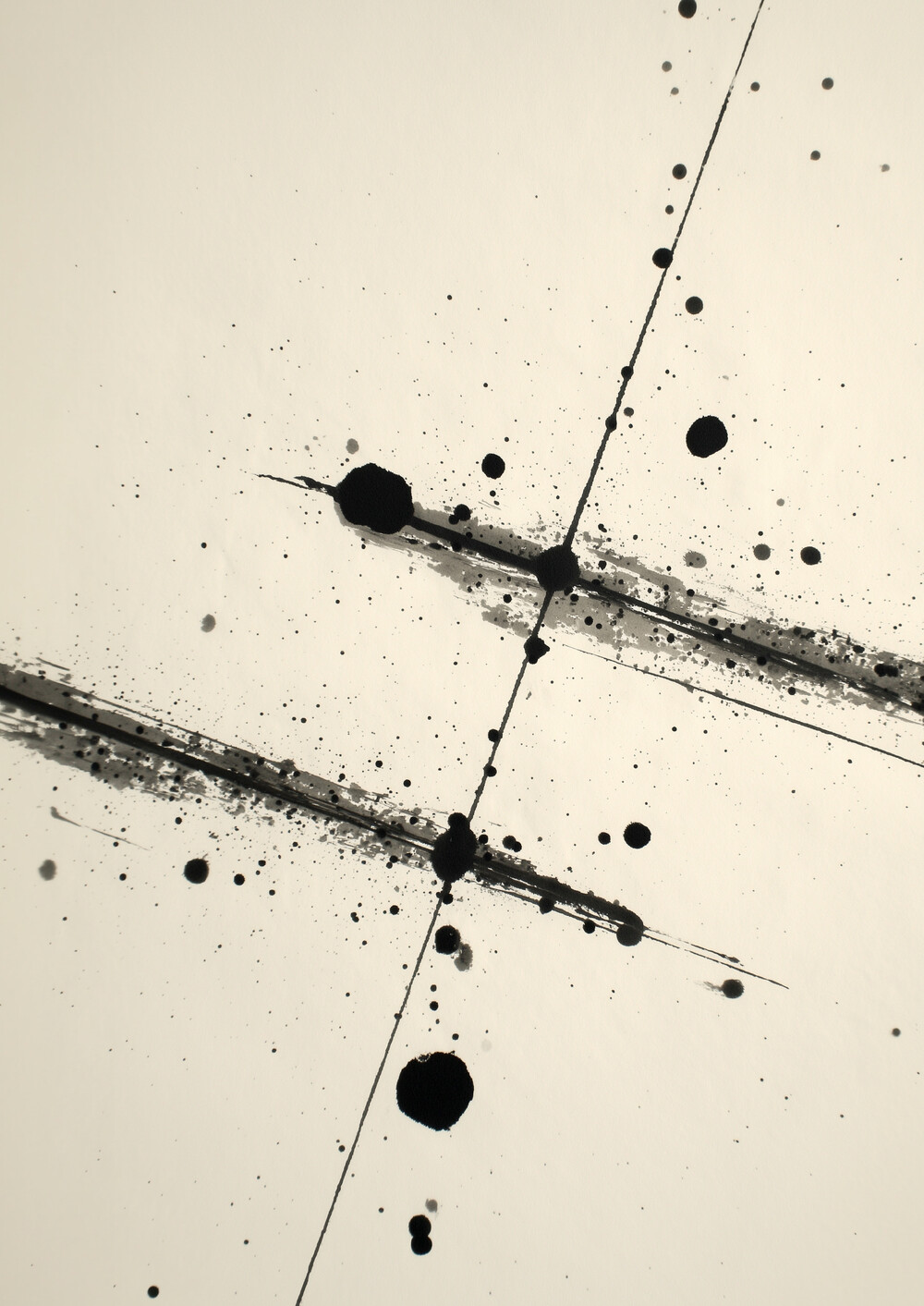 베이지 톤의 여백 위에 먹처럼 번진 검은 선이
