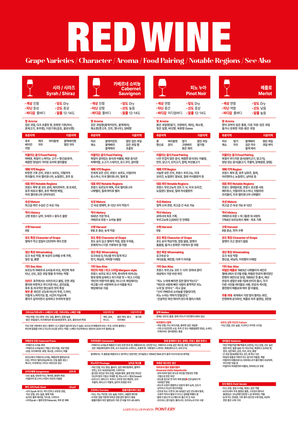 카베르네 쇼비뇽, 피노 누아, 메를로, 시라즈, 말벡 등
