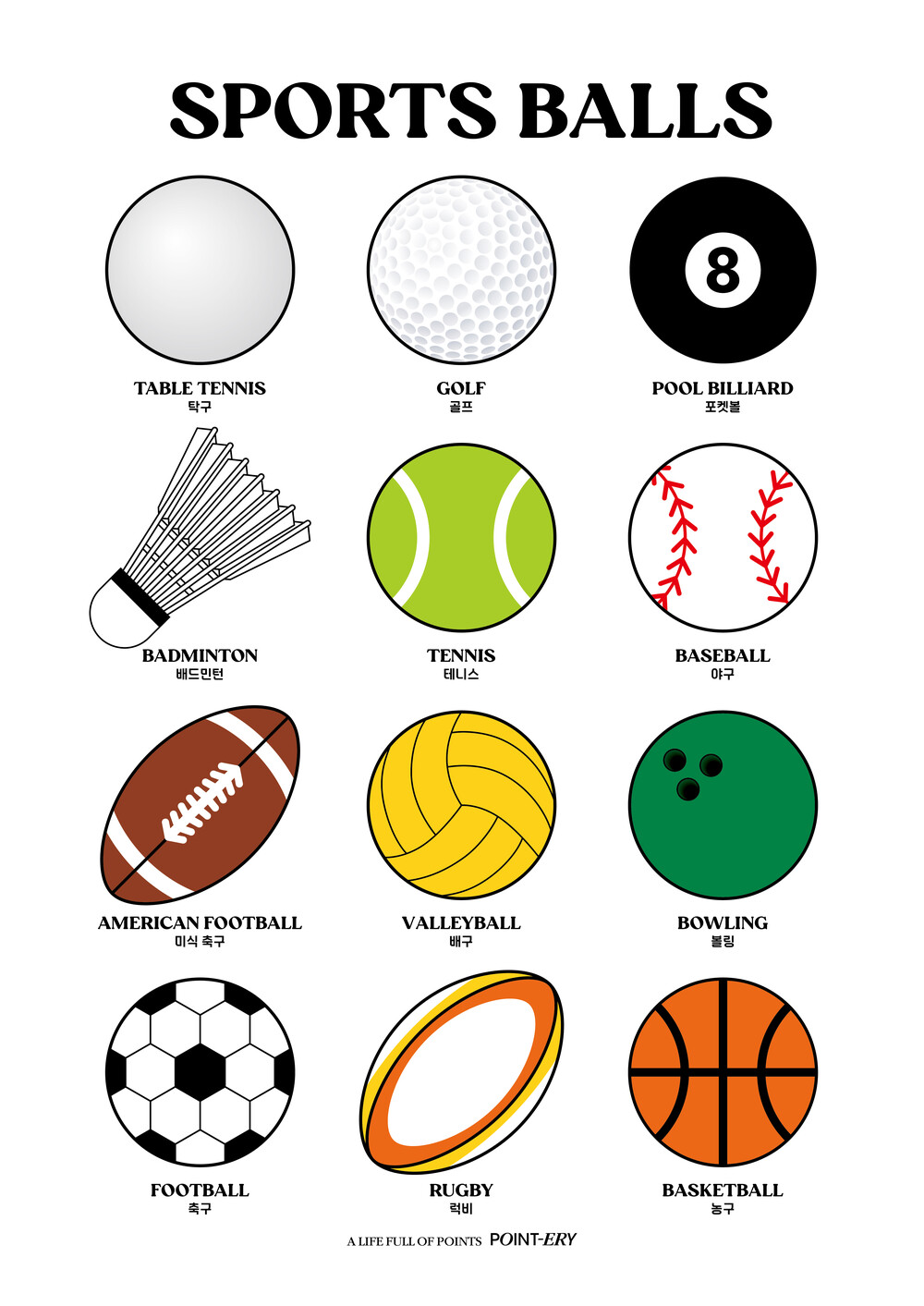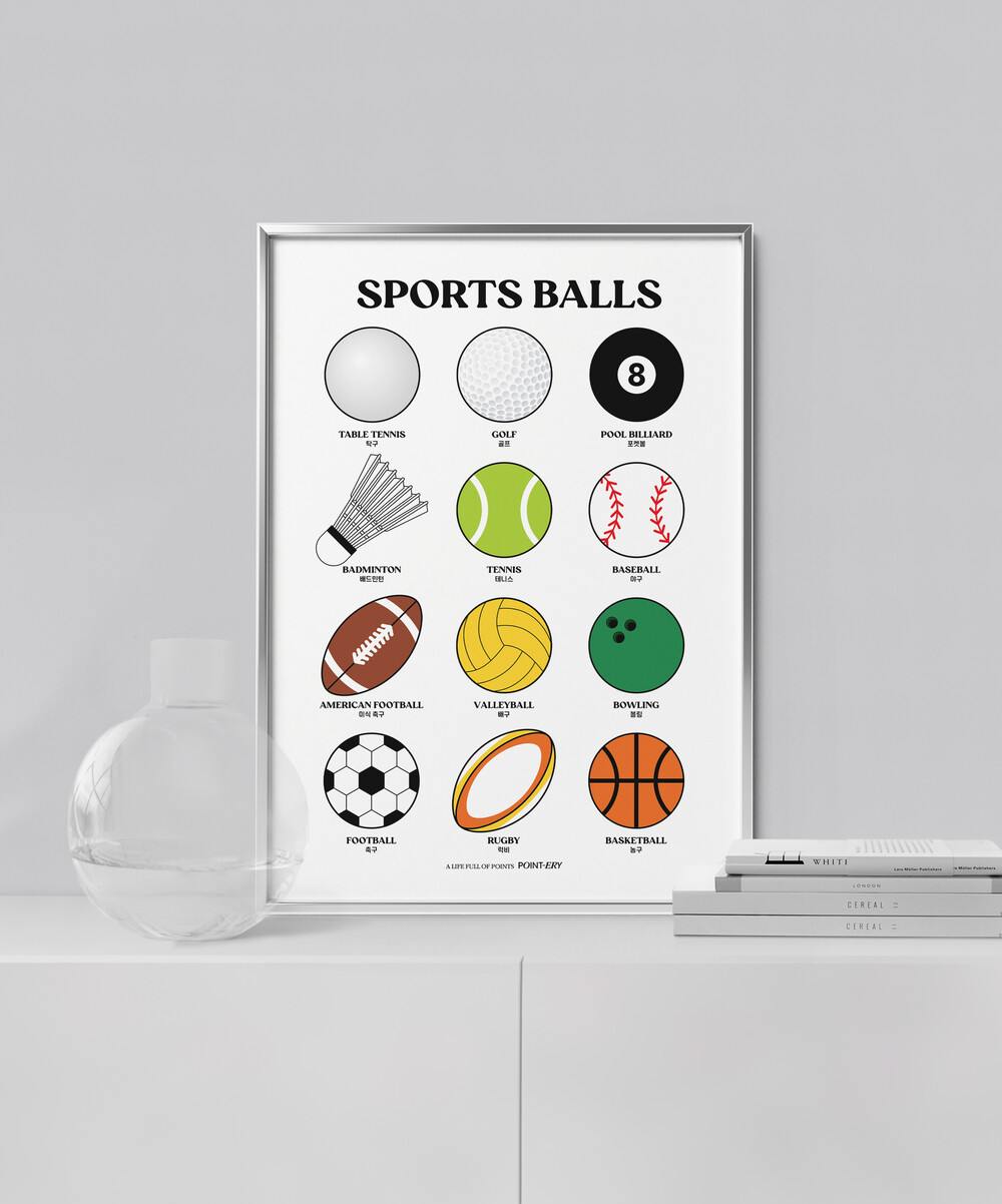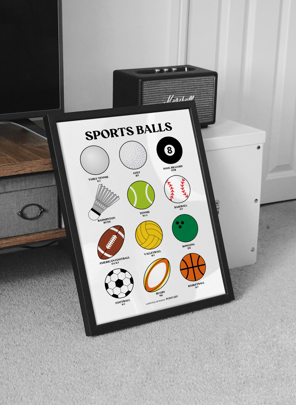 스포츠 러버들을 위한 스포츠 공 모음 포스터.