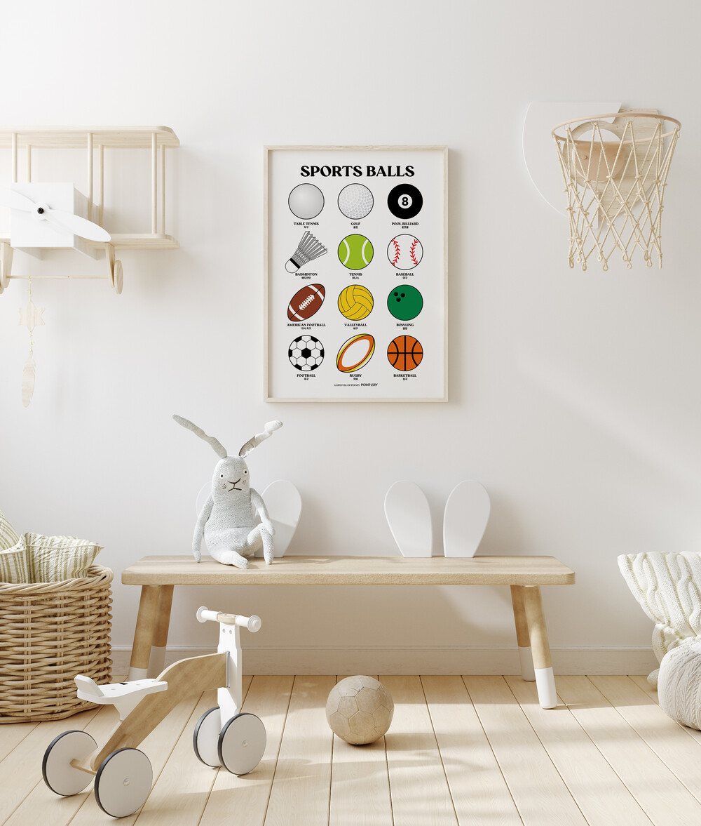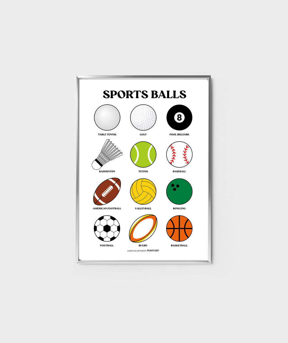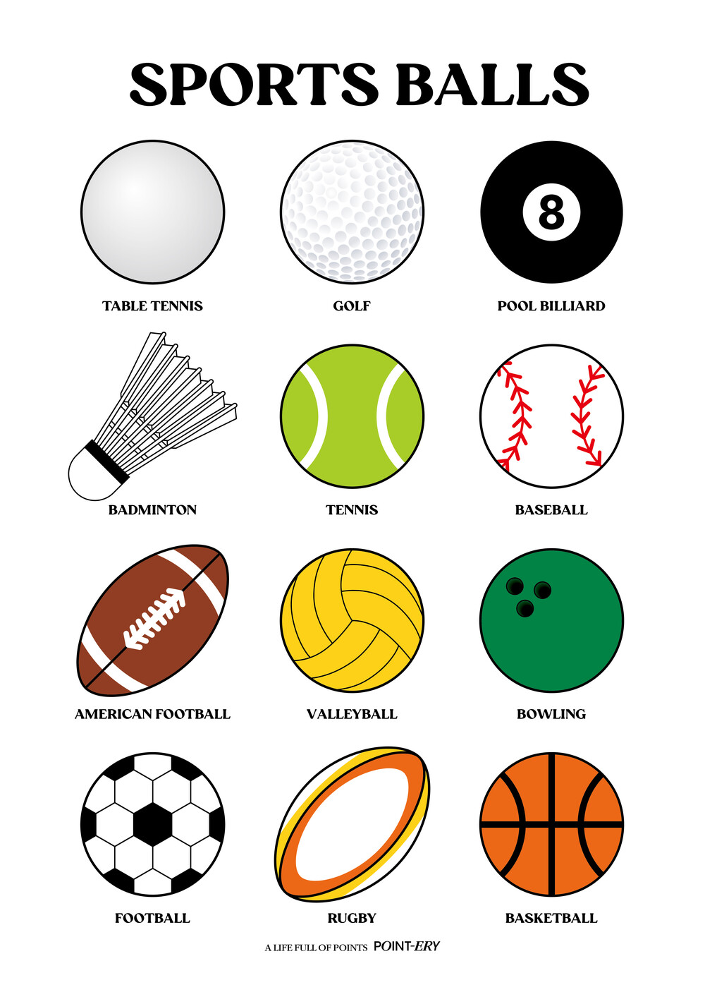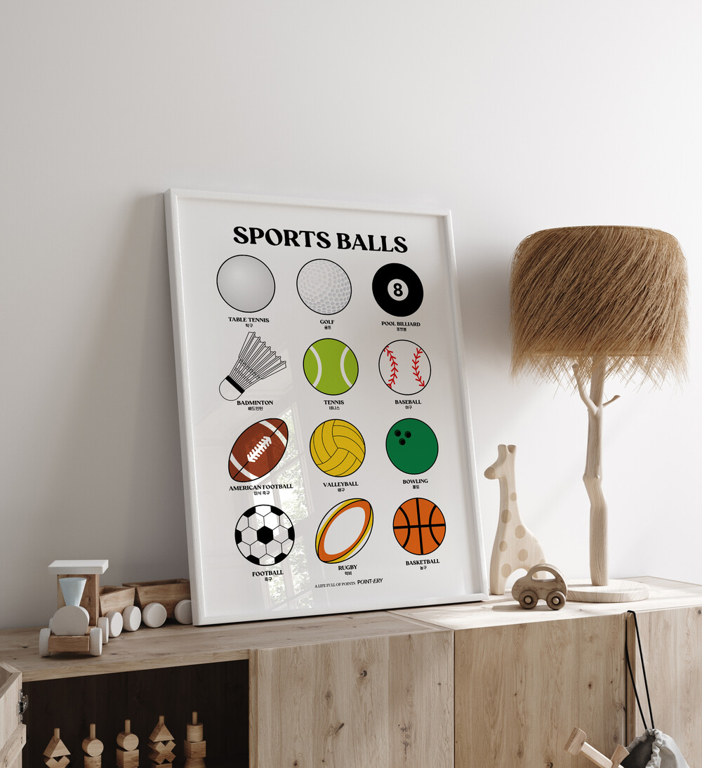 스포츠 러버들을 위한 스포츠 공 모음 포스터.