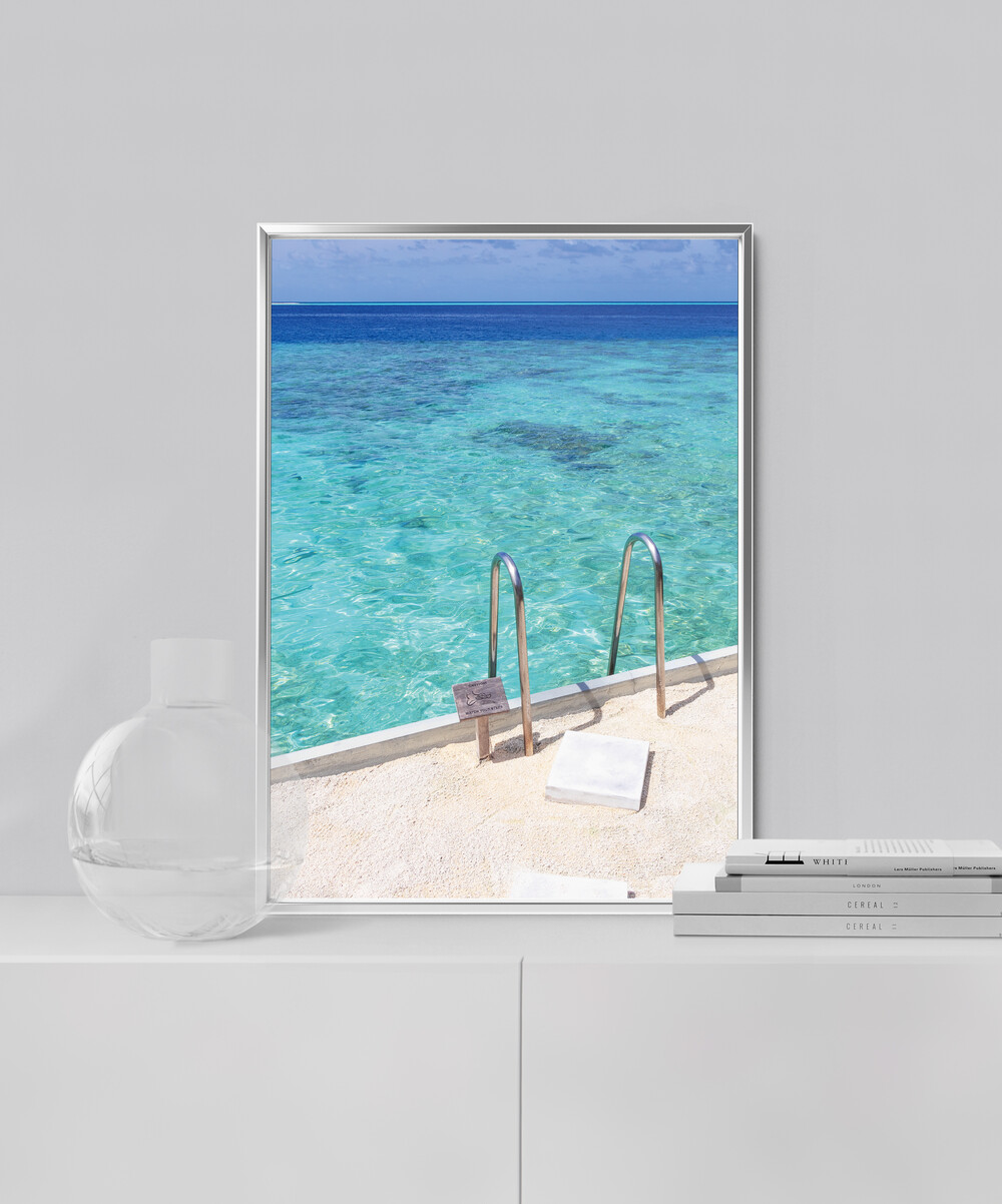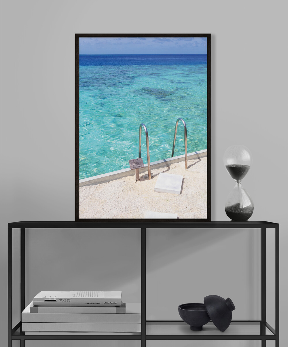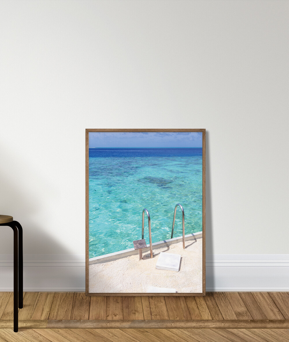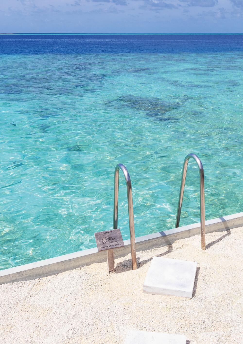 맑은 에메랄드빛 바다, 그 위로 눈부시도록 반짝이는 햇빛.
