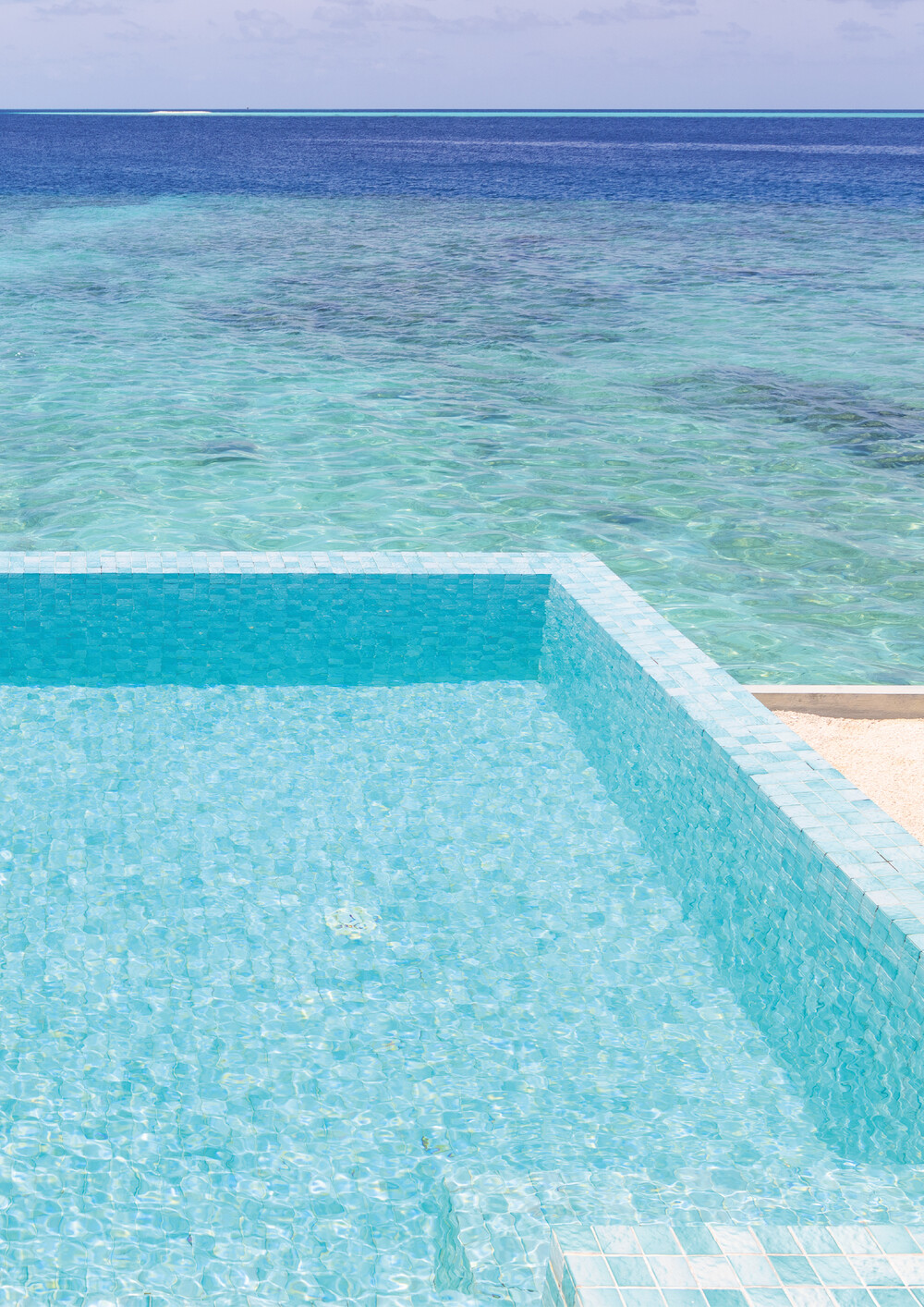 맑은 에메랄드빛 바다, 그 위로 눈부시도록 반짝이는 햇빛.