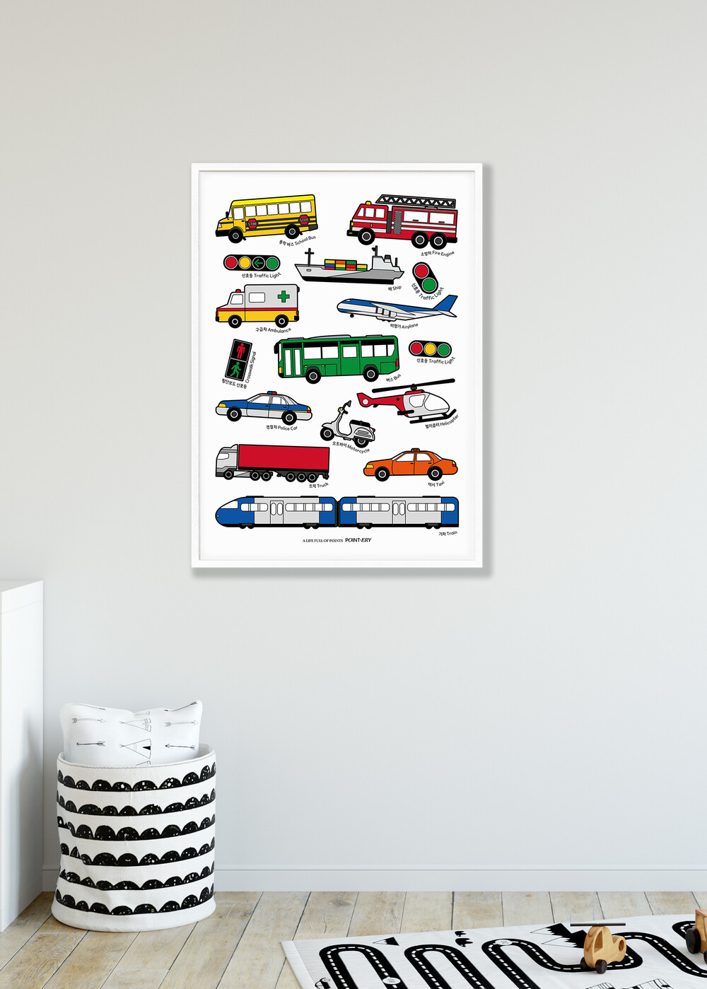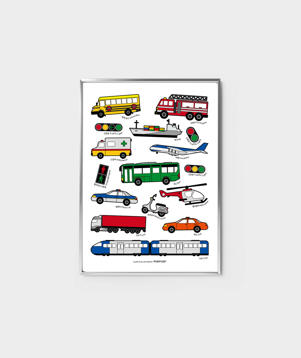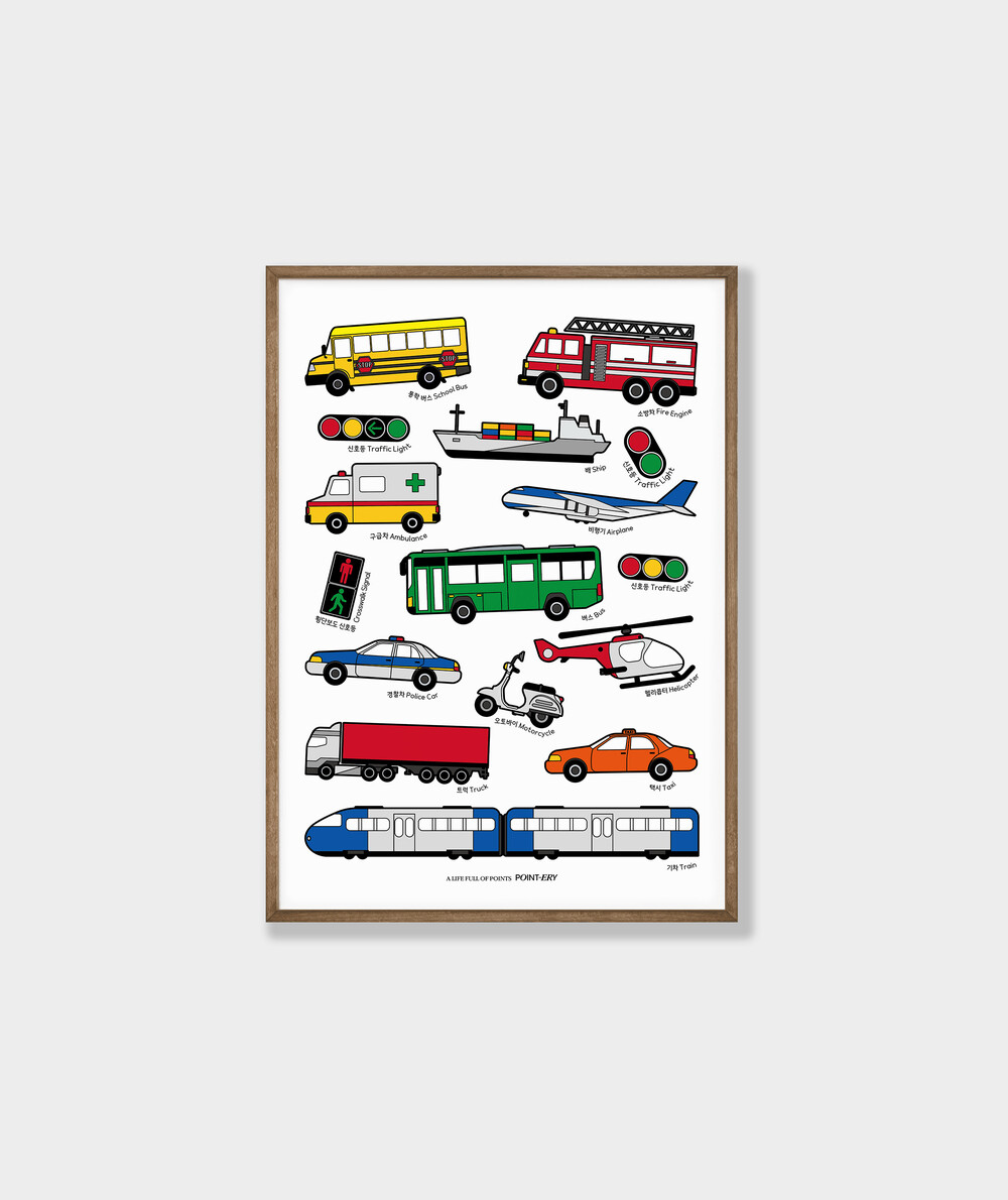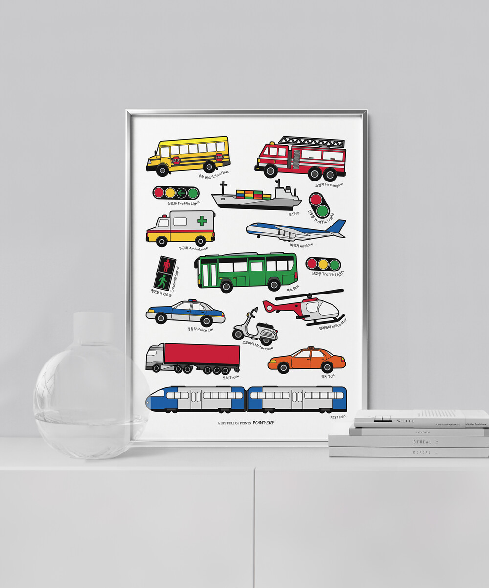 아기자기한 일러스트의 Vehicle 탈 것 모음 포스터.