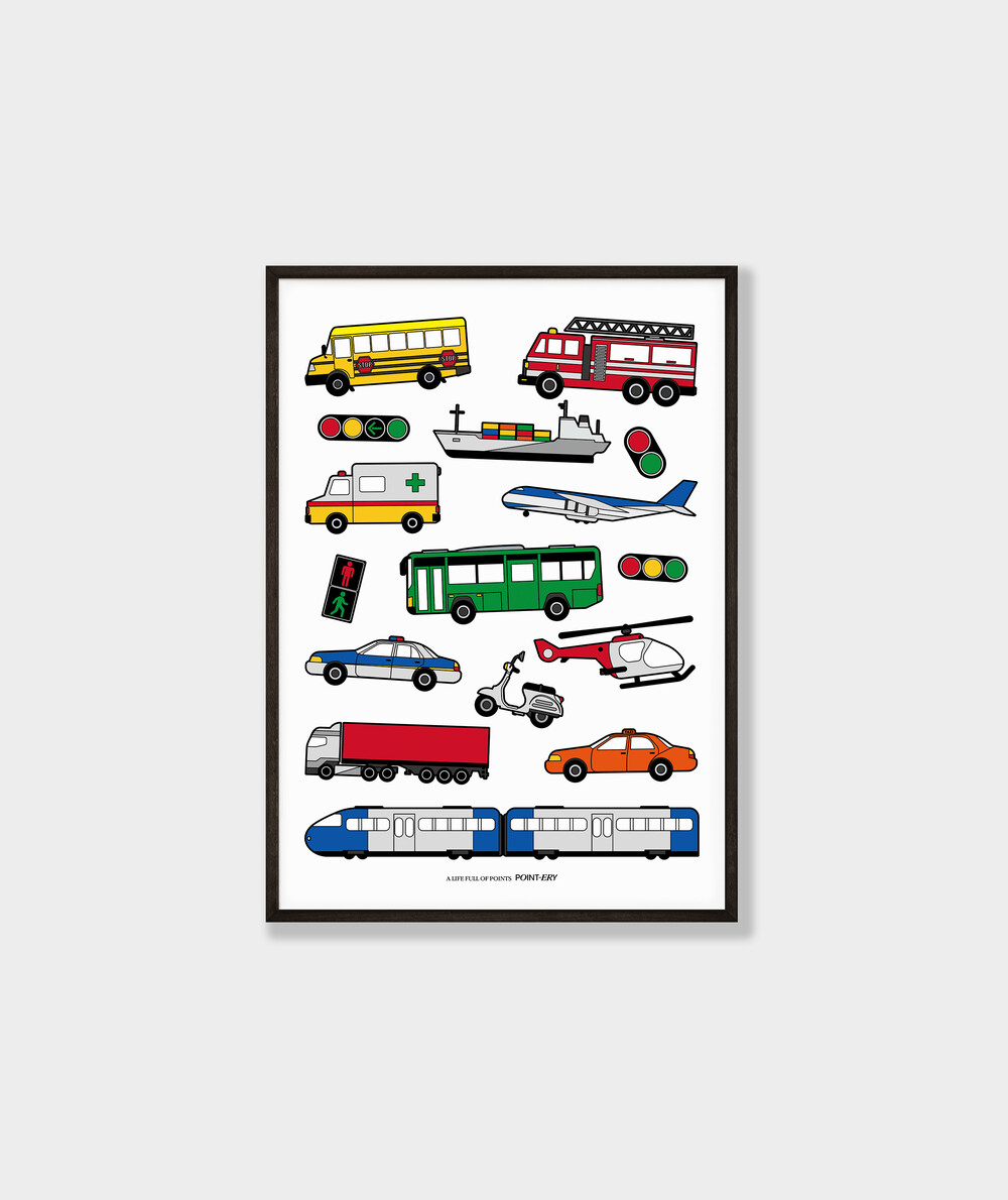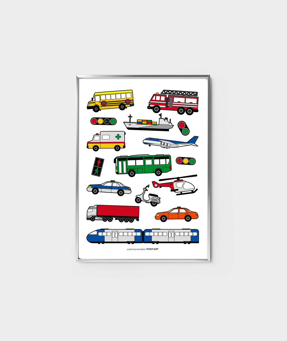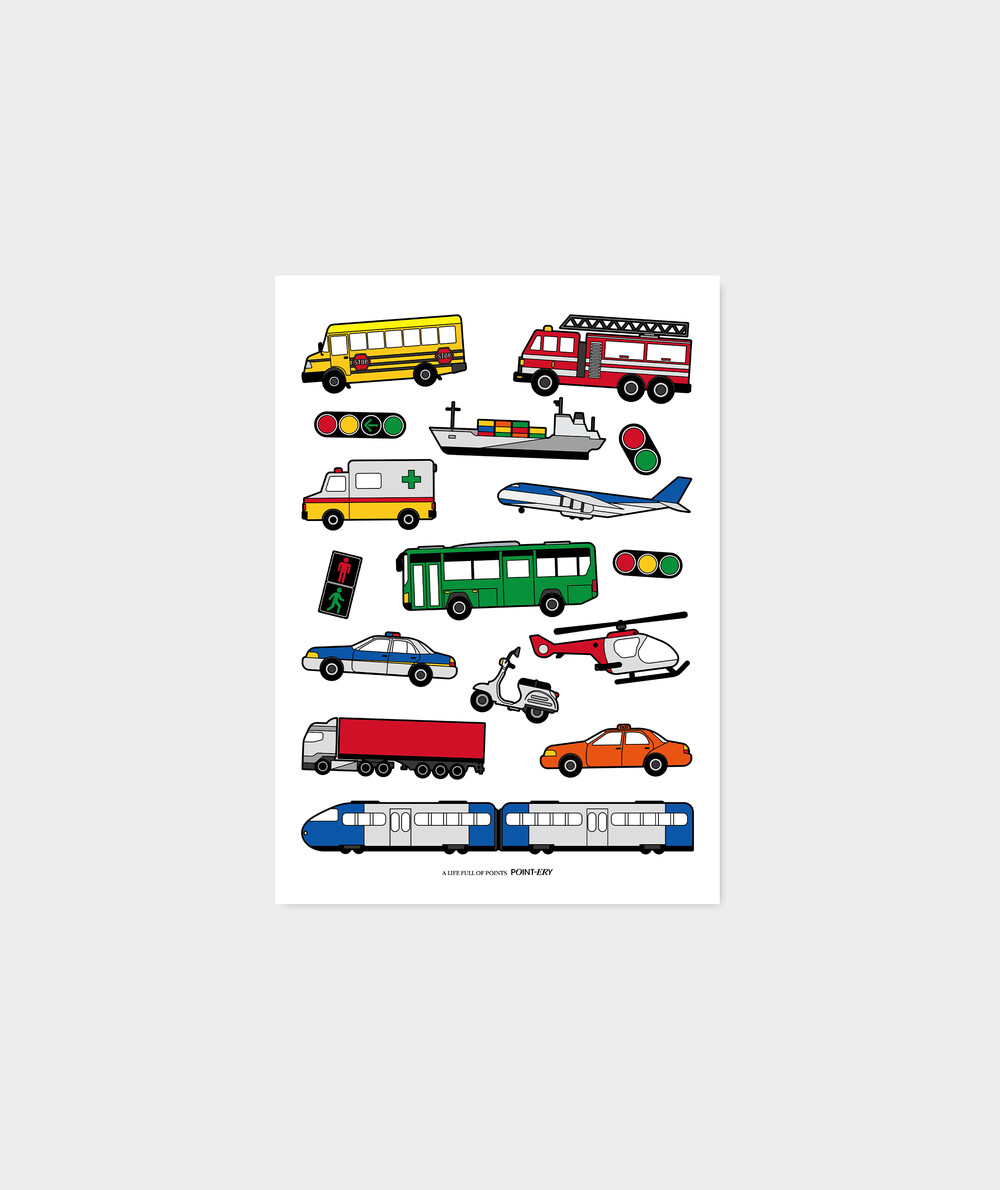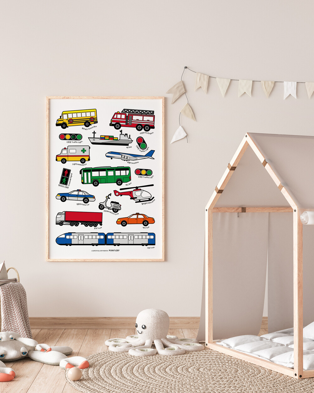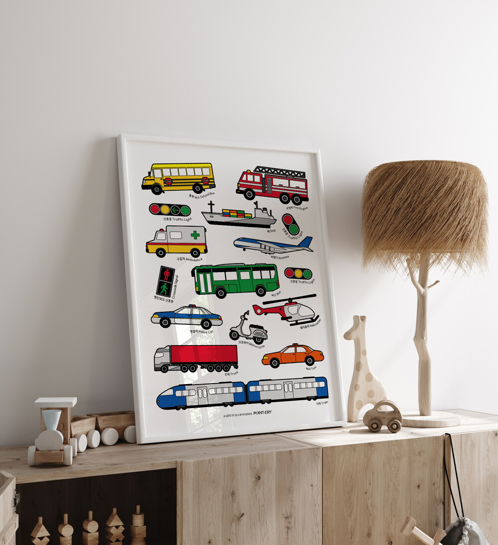 아기자기한 일러스트의 Vehicle 탈 것 모음 포스터.