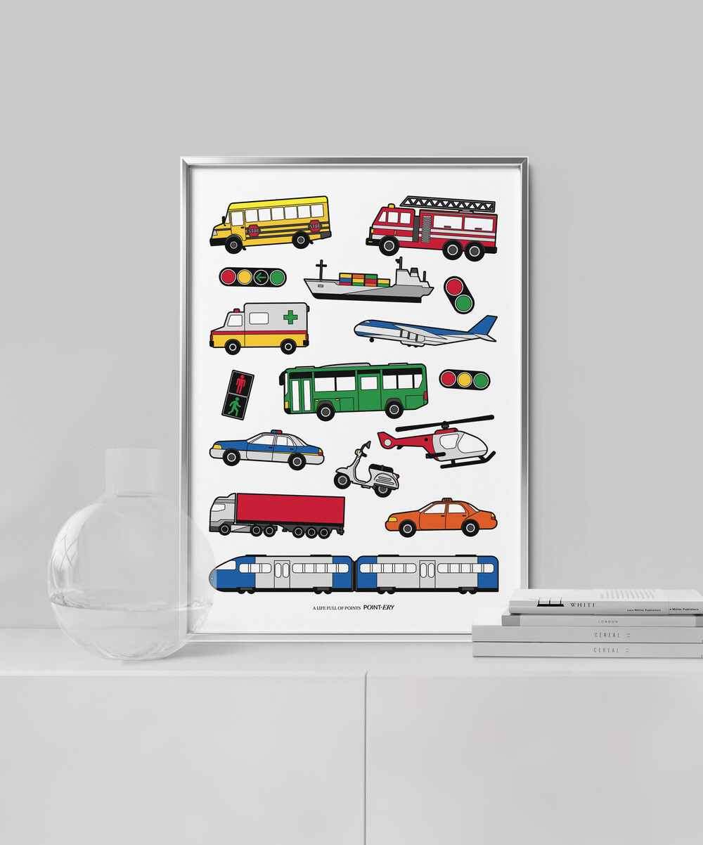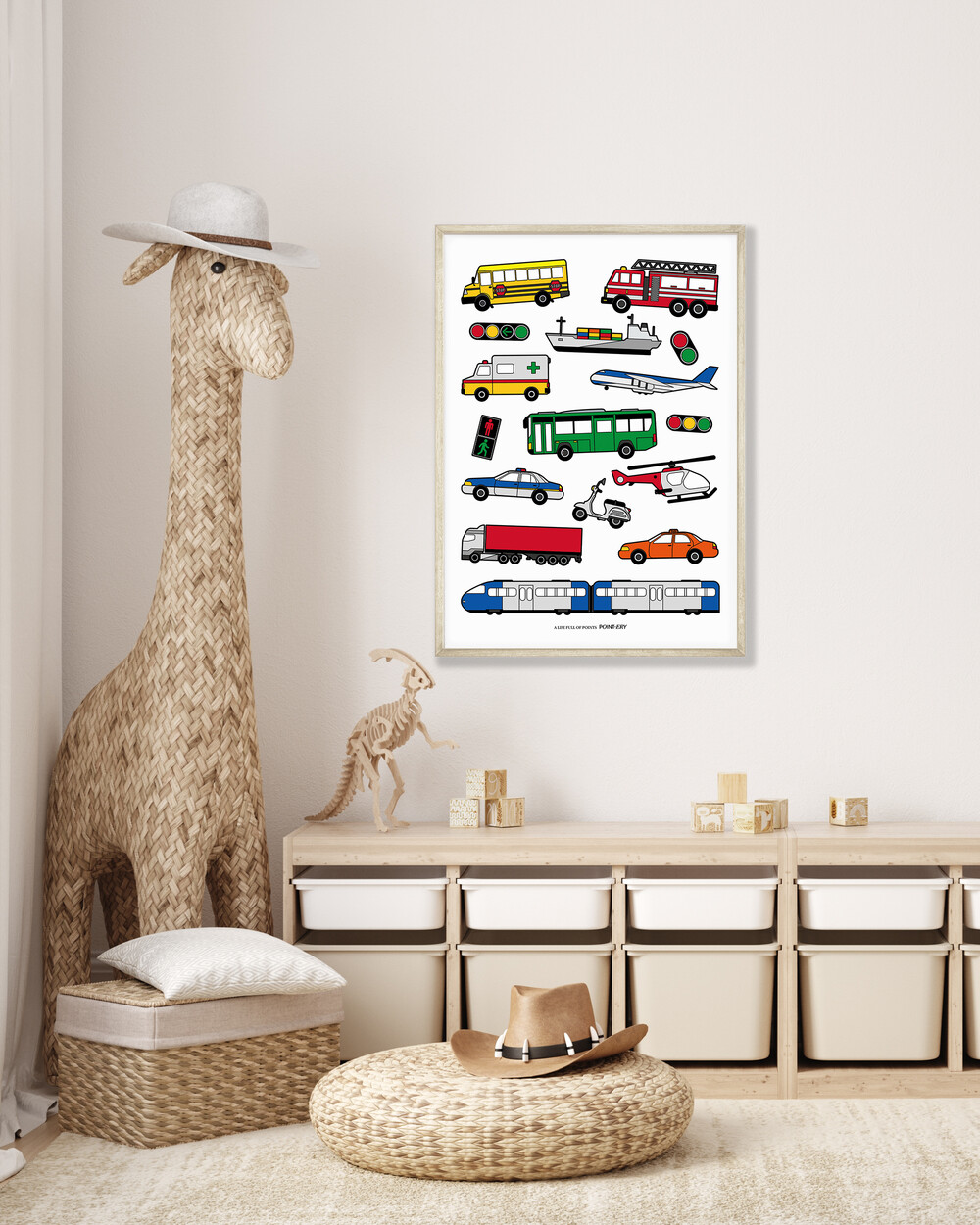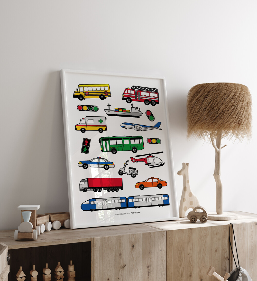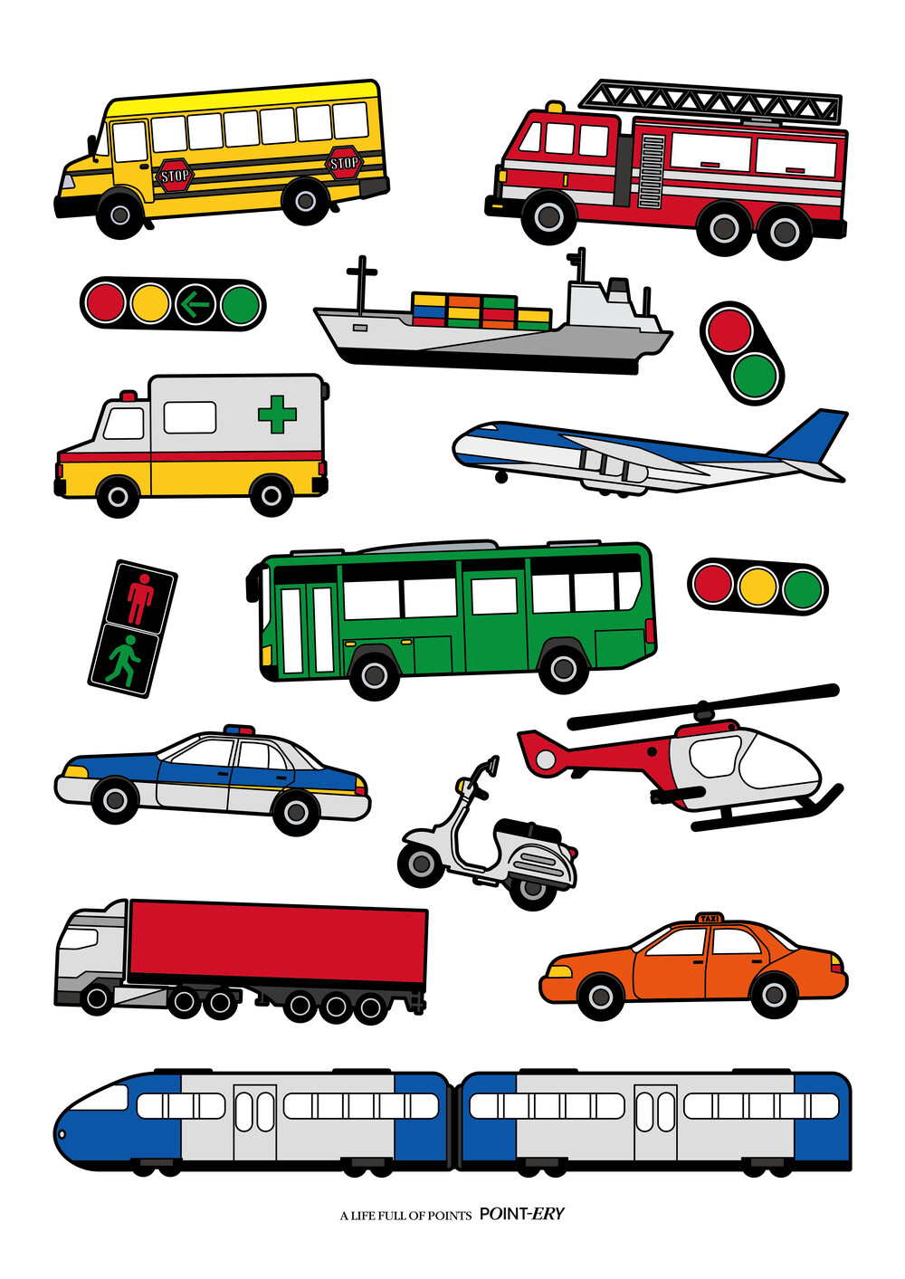 아기자기한 일러스트의 Vehicle 탈 것 모음 포스터.