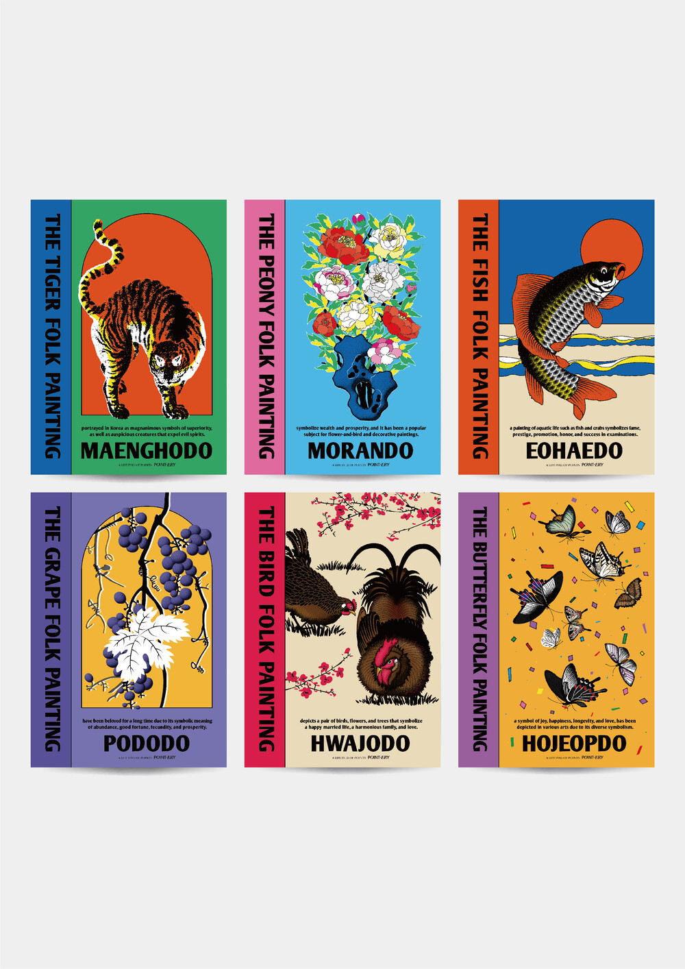 Most of the Korean folk paintings that have been handed down to us today were produced during the Joseon Dynasty, but they are said to have been painted since the Three Kingdoms period. During the Joseon Dynasty, brightly colored peony folding screens were used in royal ceremonies and state rituals, and folk paintings imitating these palace paintings were also widely produced.